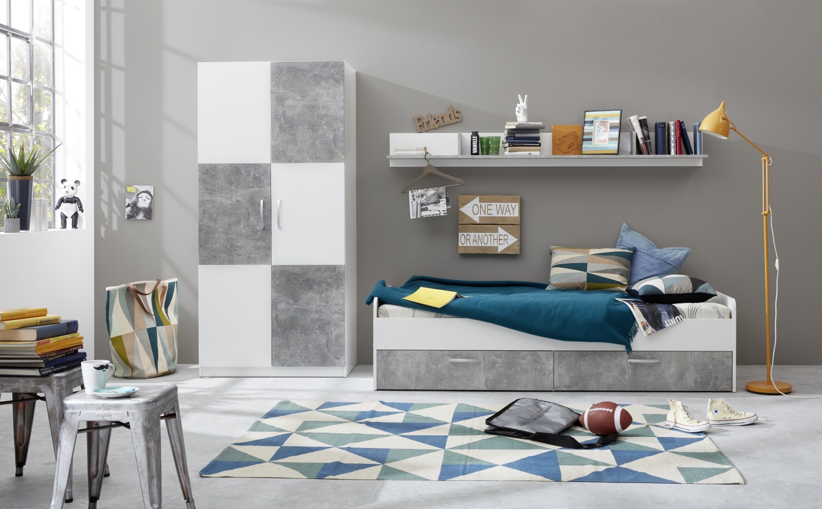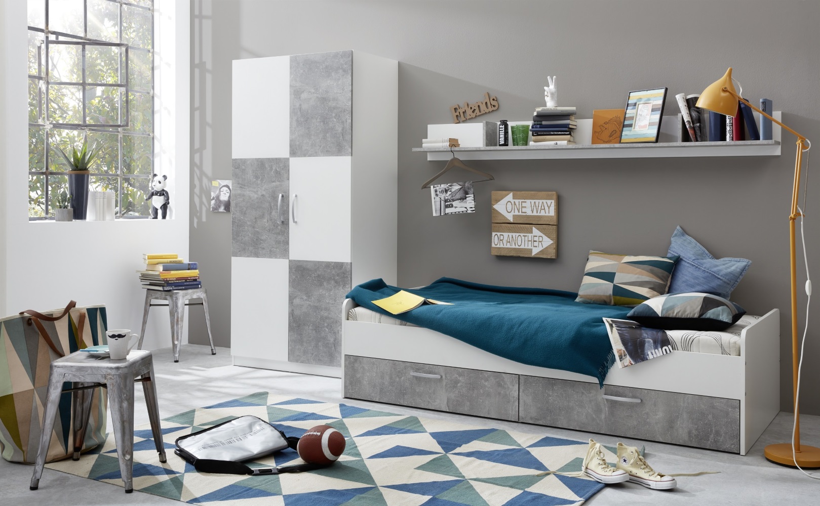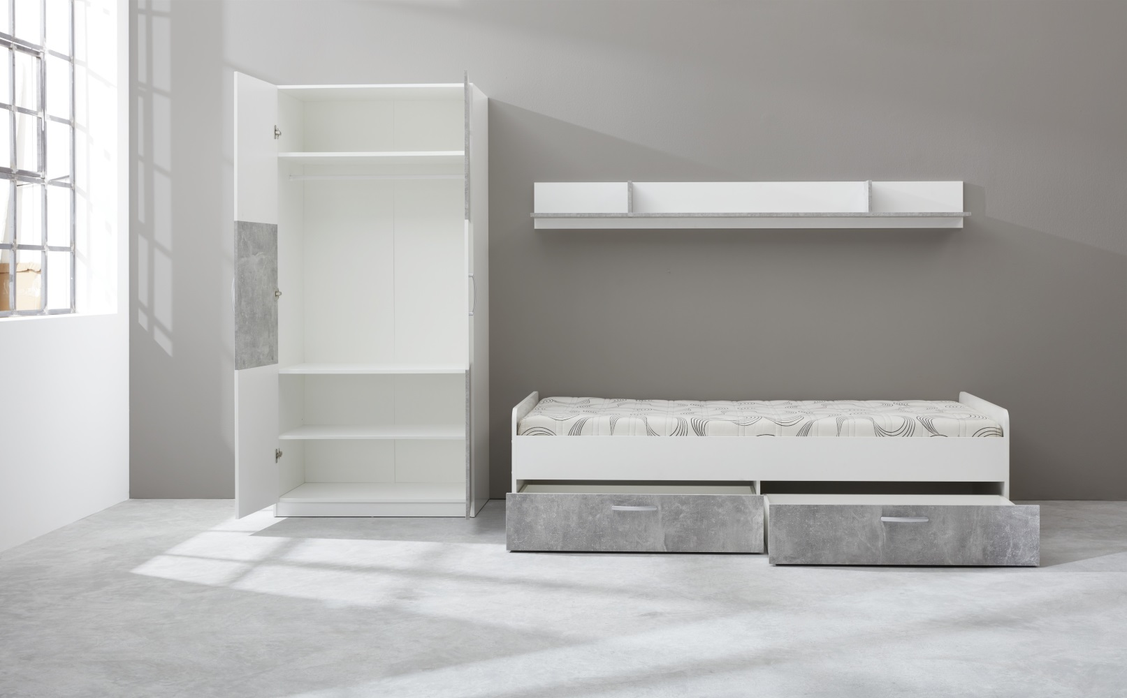 Produktinformationen "Jugendbett Canaria Weiß Beton Funktionsbett Kinderbett Bett Liege Jugendzimmer"