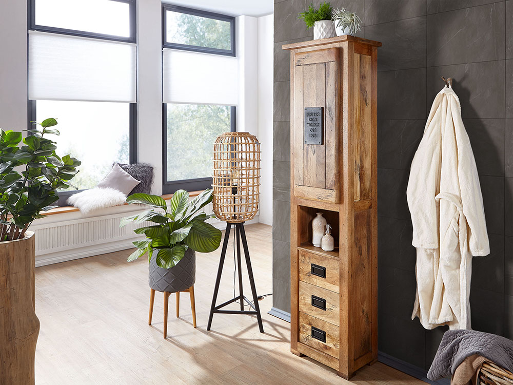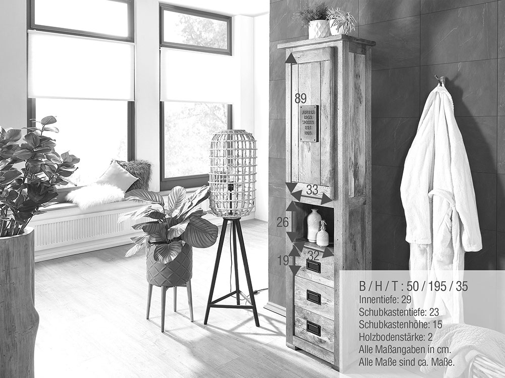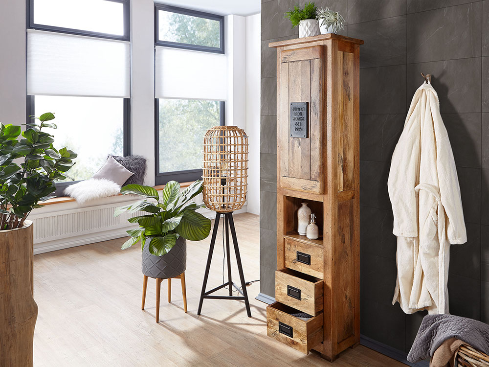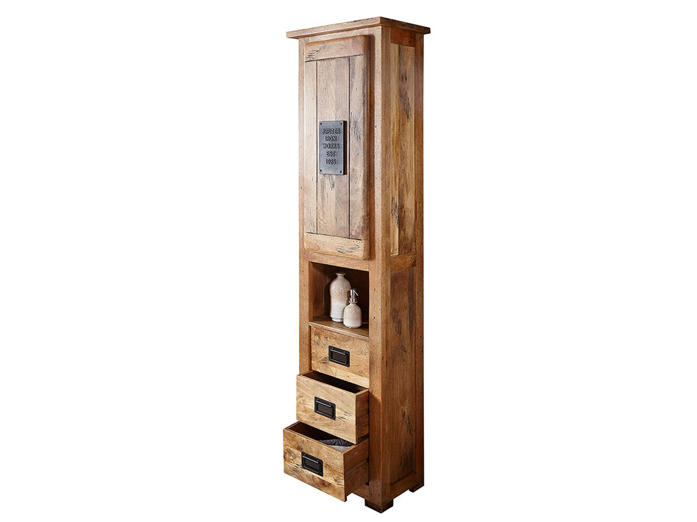 Standregal hoch BA-0480 50x195 cm Mango Massivholz Beschläge Eisen Badmöbel