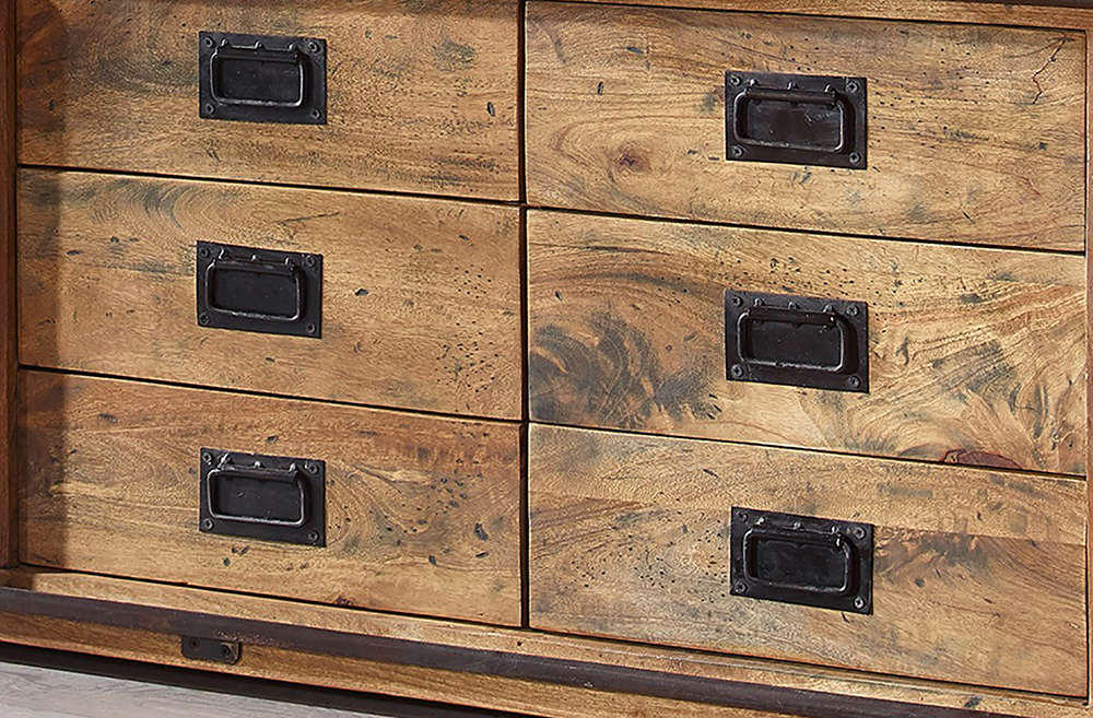 Sideboard IV WZ-0480 Mango massiv Eisen rustikal Kommode Anrichte Schrank Wohnzimmermöbel