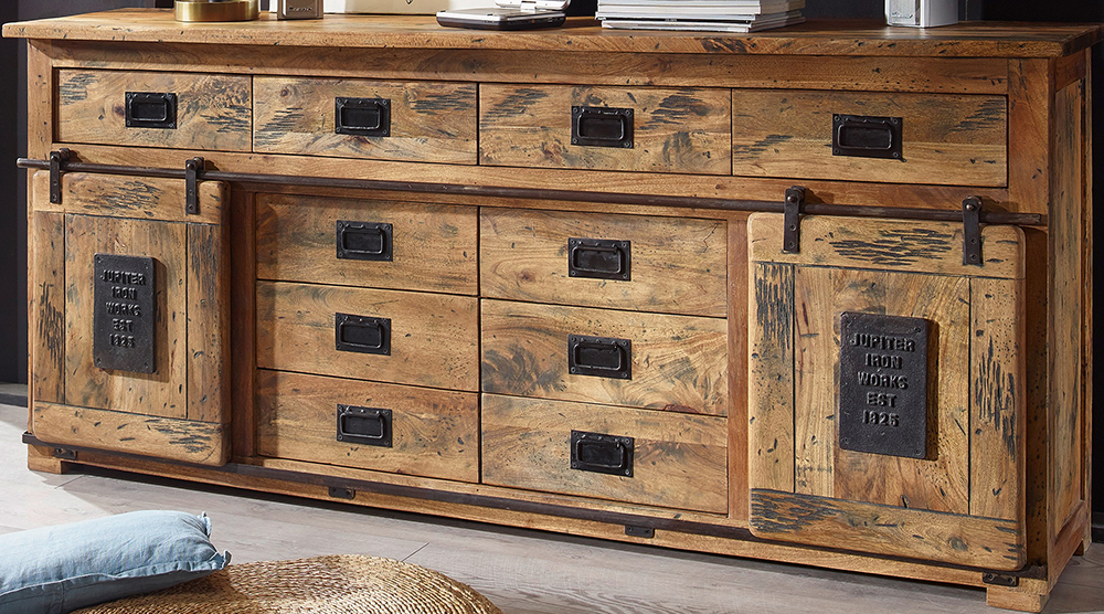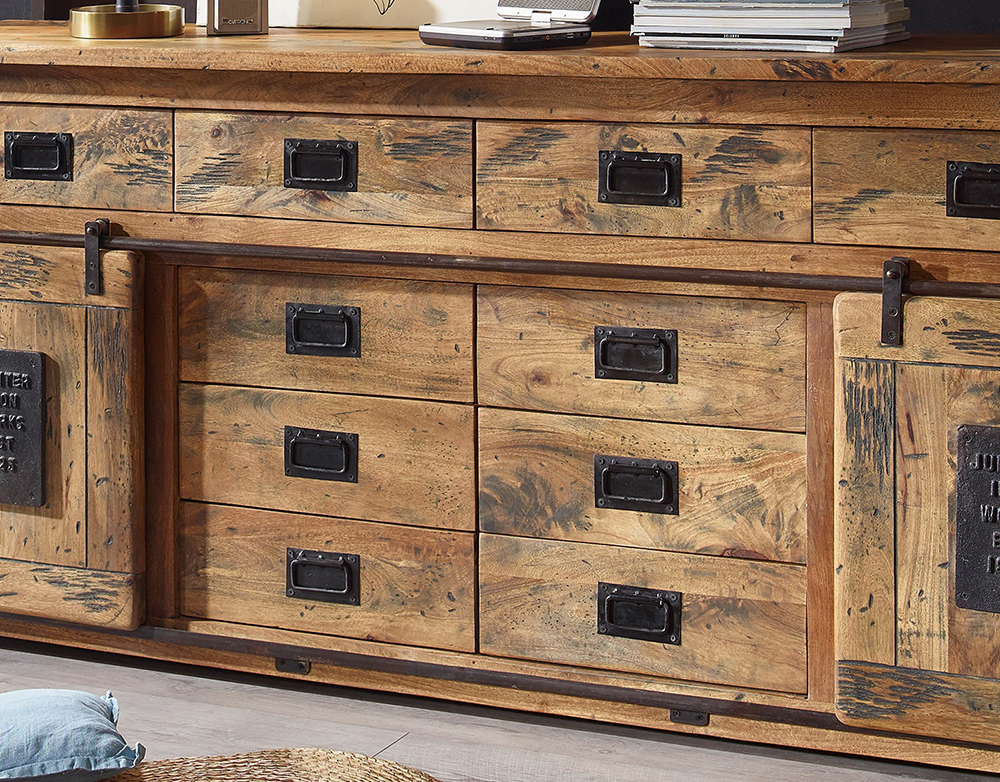 Produktinformationen "Sideboard IV WZ-0480 Mango massiv Eisen rustikal Kommode Anrichte Schrank Wohnzimmermöbel"