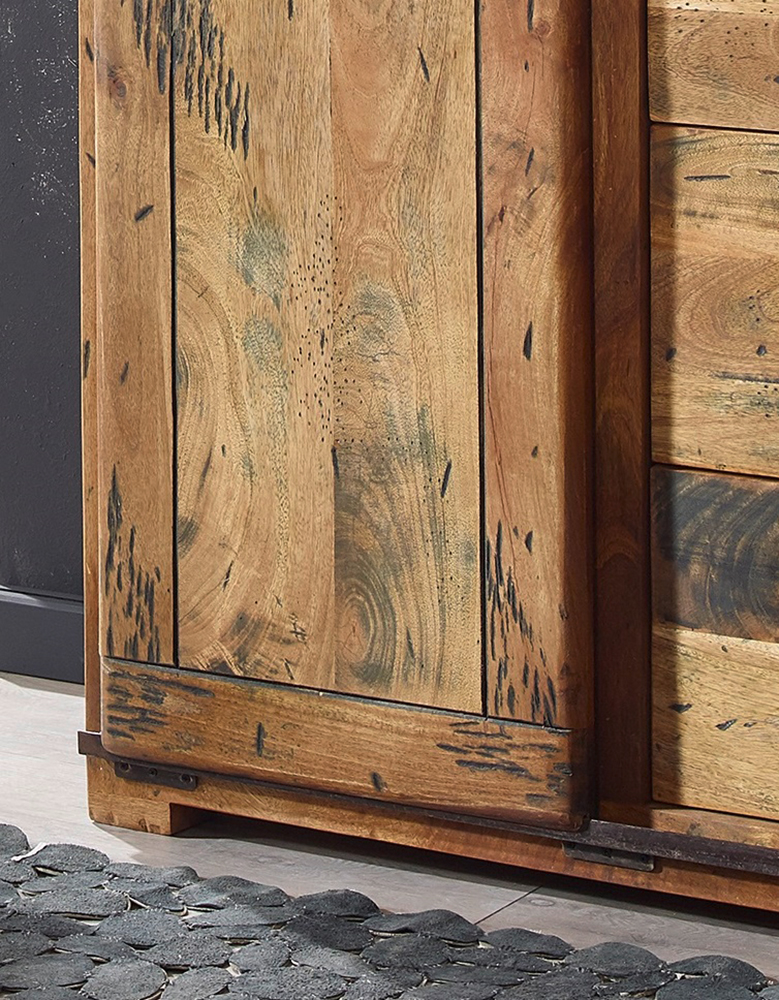 Highboard II 601 Mango Massivholz Metallapllikation Schrank Anrichte Kommode Wohnzimmerschrank