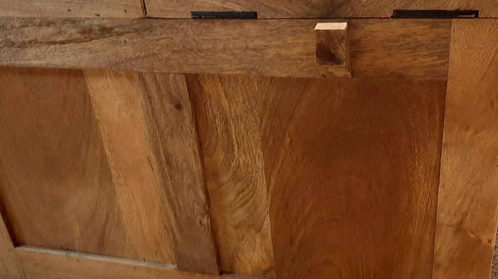 Bitte beachten Sie, dass Massivholz ein natürliches Material ist und daher einige Merkmale aufweisen kann, die seinen einzigartigen Charakter ausmachen. Massivholz kann Astlöcher, Wuchsrisse, Farbunterschiede und andere natürliche Merkmale aufweisen. Diese Unterschiede sind kein Grund zur Beanstandung, sondern zeugen von der Authentizität des Materials und verleihen jedem Möbelstück seinen individuellen Charme. Holz kann im Laufe der Zeit nachdunkeln oder aufgrund von Lichteinwirkung seine Farbe verändern. Diese Veränderungen sind normal und unterstreichen die natürliche Schönheit des Materials. Bitte zögern Sie nicht, wenden Sie sich bei Rückfragen gern an unseren Kundendienst.