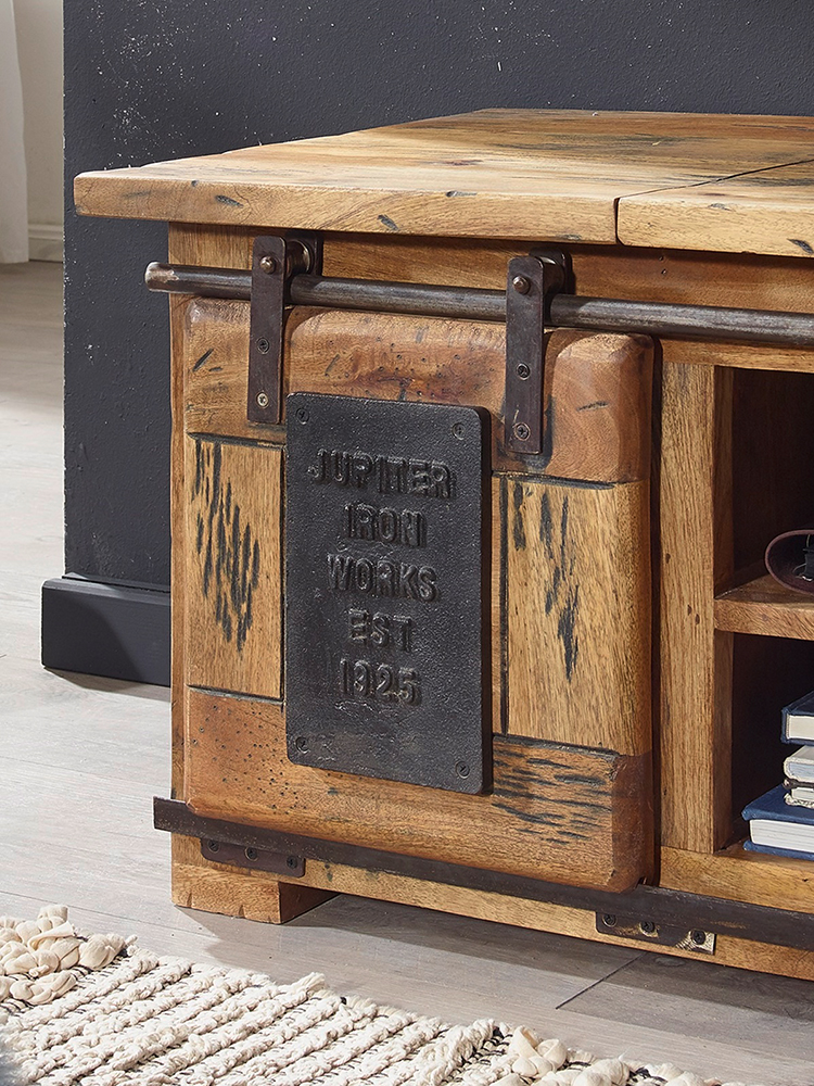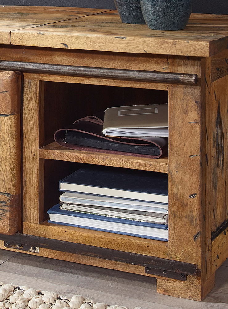 Truhe WZ-0480 Mango Holz massiv rustikal Eisen Rolltür offene Fächer TV Möbel