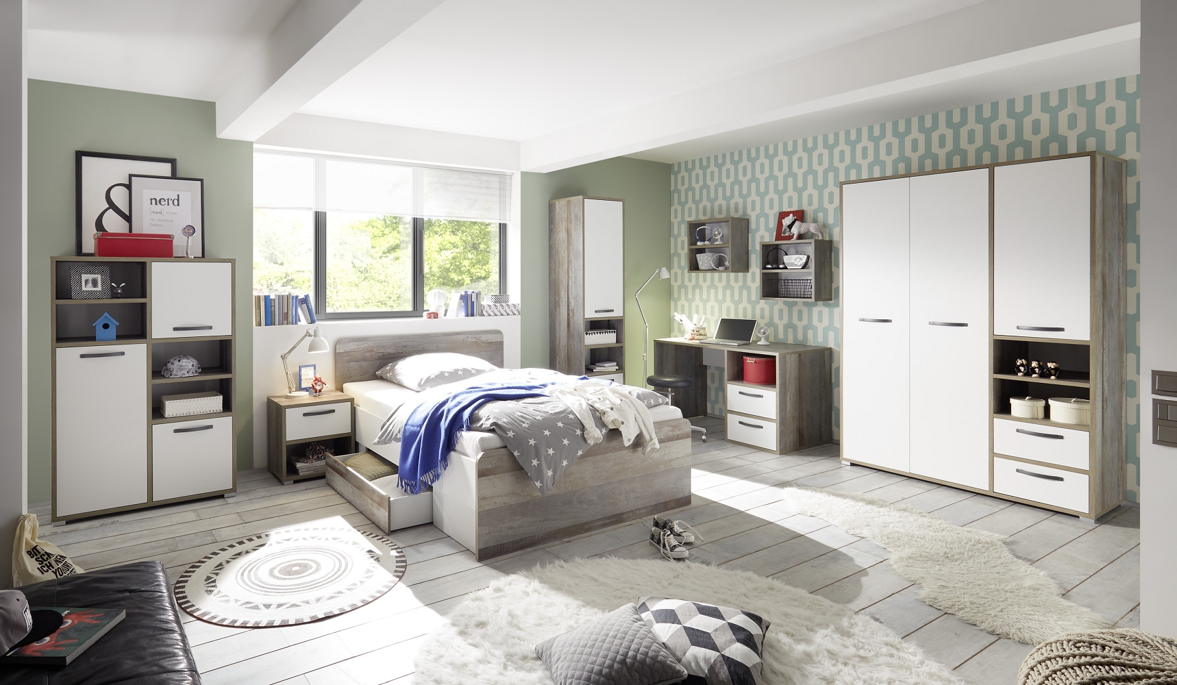 Das geräumige Standregal Moon bietet ausreichend Platz für diverse Ablagen. Hinter den beiden Türen haben Sie genug Platz um verschiedene Dinge optimal zu verstauen. Durch die moderne Farbgestaltung aus Driftwood und Weiss liegt das Standregal Moon voll im Trend und macht überall eine gute Figur, egal ob im Schlafzimmer, Kinderzimmer oder Wohnzimmer. In den beiden offenen Fächern vom Standregal Moon finden auch Ihre Dekogegenstände ihren Platz und lassen sich schön in Szene setzen. Zögern Sie nicht, das Standregal Moon ist die optimale Bereicherung für Ihre vier Wände. Sie werden Ihre Freunde an dem Standregal Moon haben.