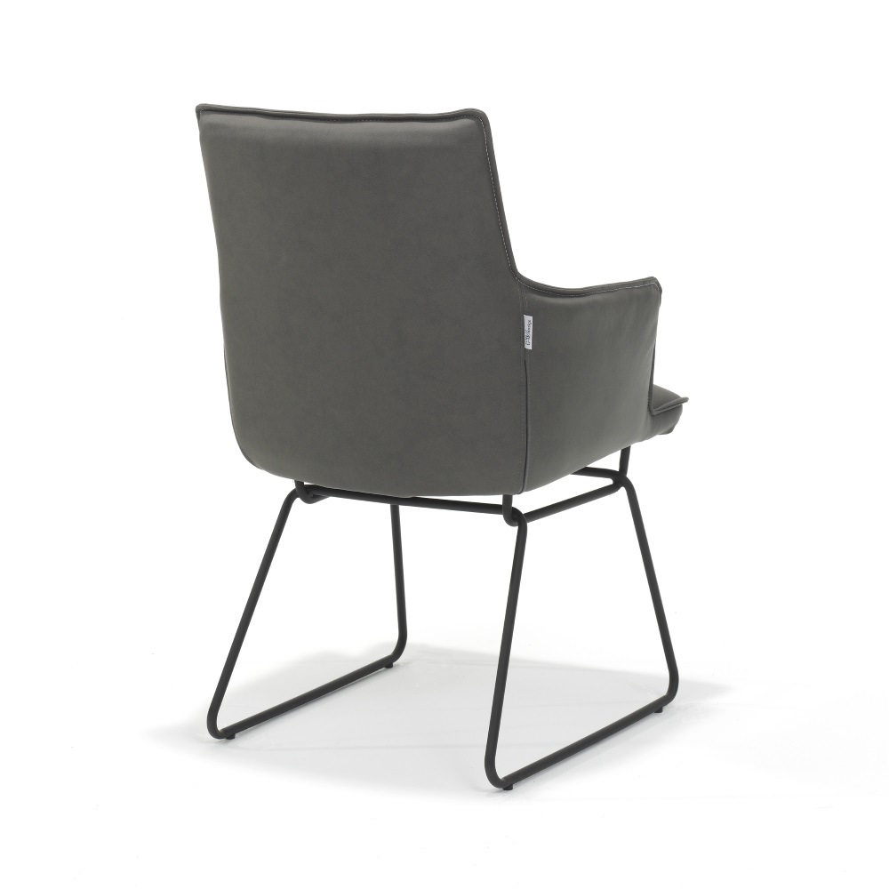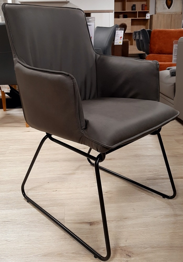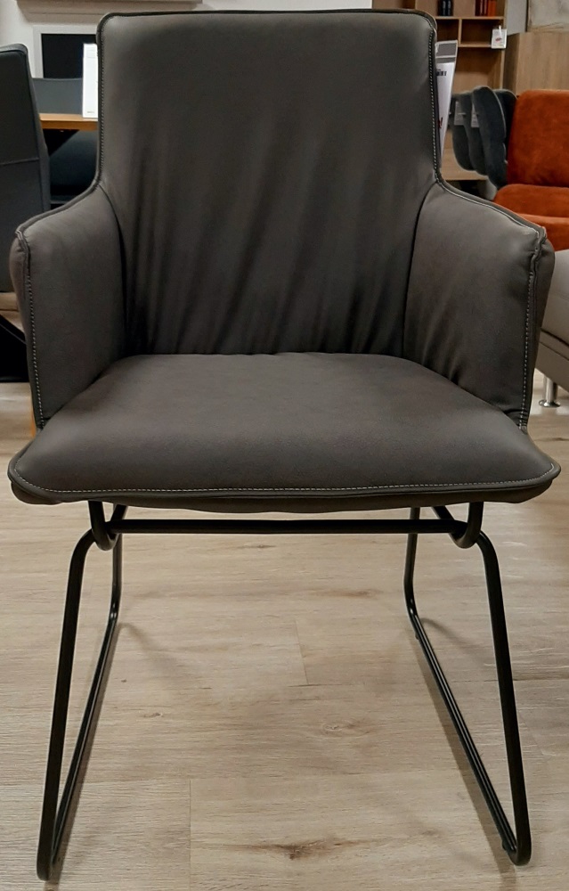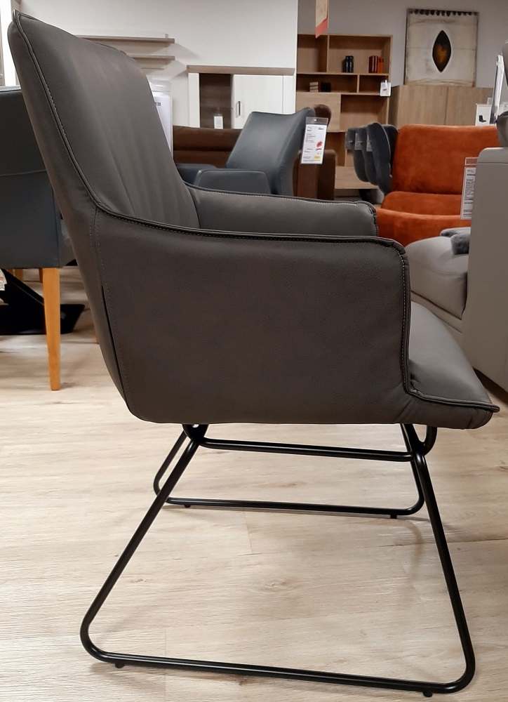Der Esszimmerstuhl Flair ist mit seiner modernen und anpassbaren Optik ein modischer hin Gucker in jedem Esszimmer. Mit dem Kunstlederpolster in Anthrazit, und den schwarzen Schlittengestell aus Aluminium wirkt der Stuhl freundlich und einladend. Durch das Kunstleder kann Dreck und Staub einfach ohne Probleme abgewischt werden, und somit kann man die Esszimmerstühle immer leicht sauber halten. Mit den Armlehnen kann man bequem seine Arme ablegen um entspannter Sitzen zu können. Der Esszimmerstuhl sieht aber nicht nur gut aus, sondern kann mit seiner Belastung von ca. 120 Kg auch überzeugend wirken.