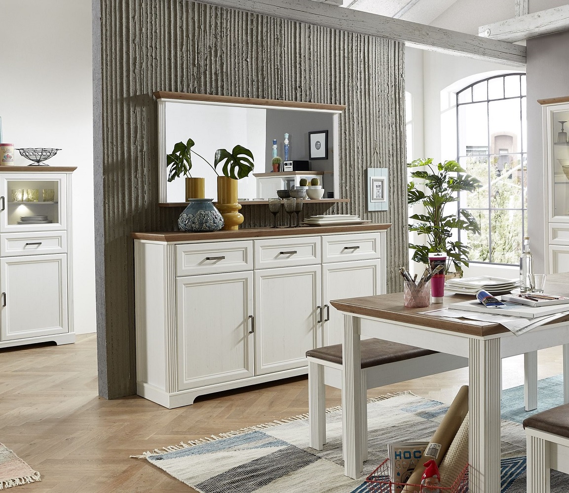 Mit dem gerahmten Spiegel Jasmin wird die Garderobe, der Eingangsbereich oder die Diele geschmackvoll aufgewertet. Besonders harmonisch fügt der Spiegel Jasmin sich in eine Einrichtung im modernen Landhausstil. Der breite Rahmen besteht aus MDF mit veredelter Oberfläche. Dank der großzügig bemessenen Spiegelfläche wirkt das Zimmer weiträumiger und größer. Angebracht ist der Wandspiegel im Handumdrehen mit dem beiliegenden Montagematerial. Eine sehenswerte Bereicherung mit natürlicher Note, der Spiegel Jasmin. Schön und modern, der Spiegel Jasmin in Pinie hell und Artisan Eiche Nb.