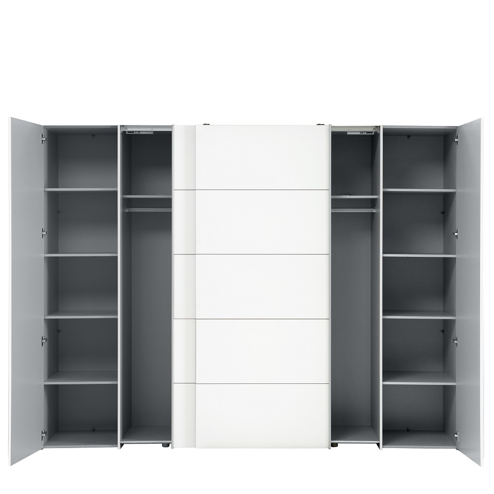 Kleiderschrank Narago Weiß 2 Schiebetüren 2 Drehtüren Schrank Schwebetürenschrank