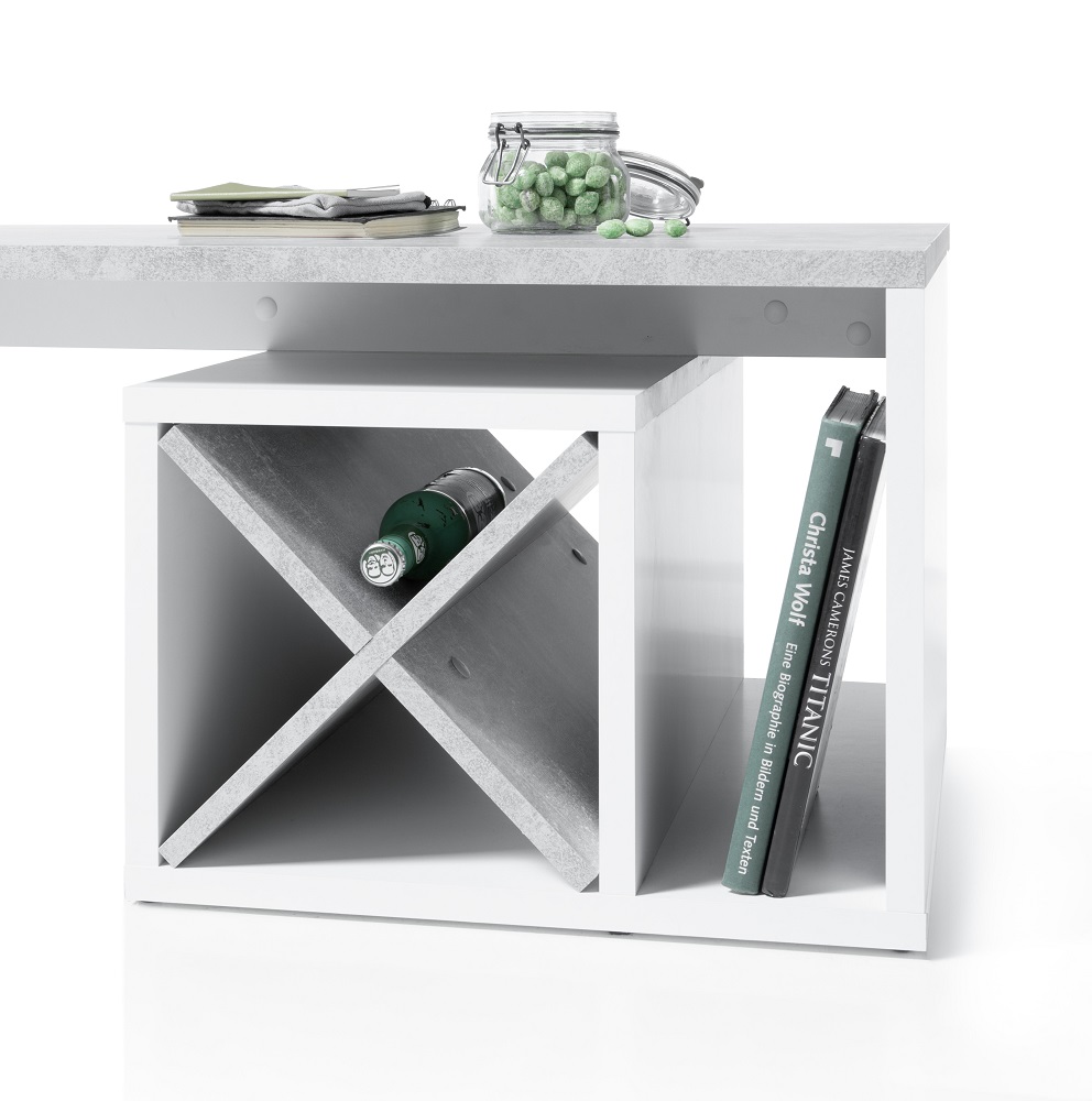 Couchtisch Estelle MDF Weiß Beton Nb. 4 Flaschenfächer Stubentisch Tisch