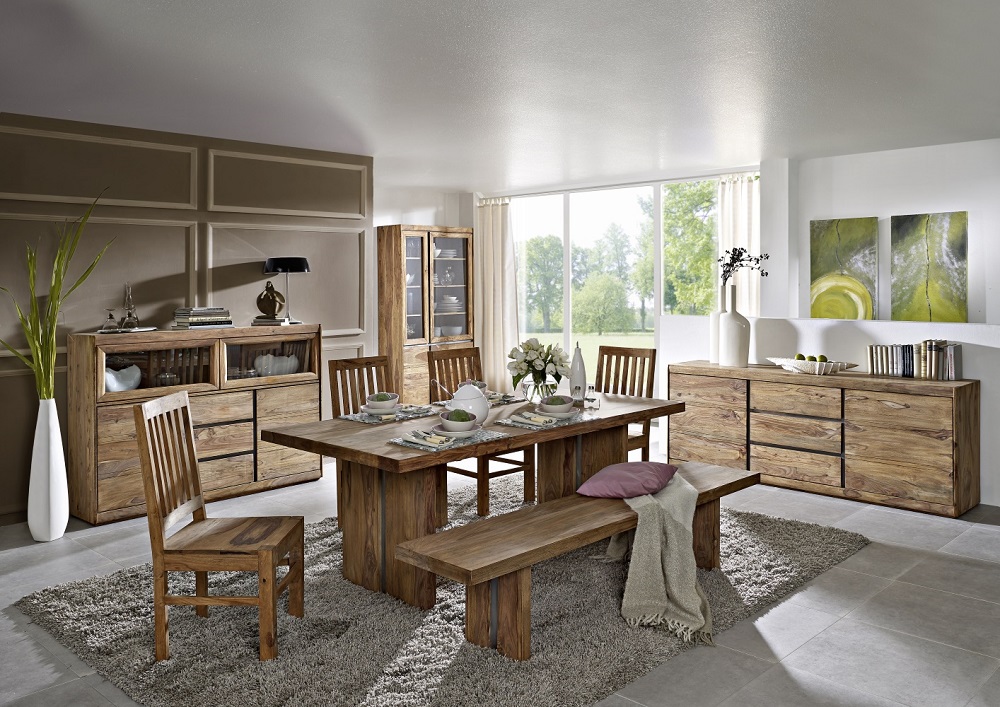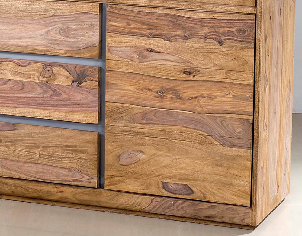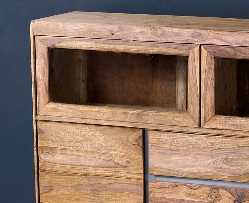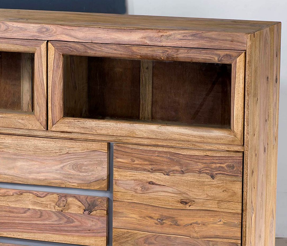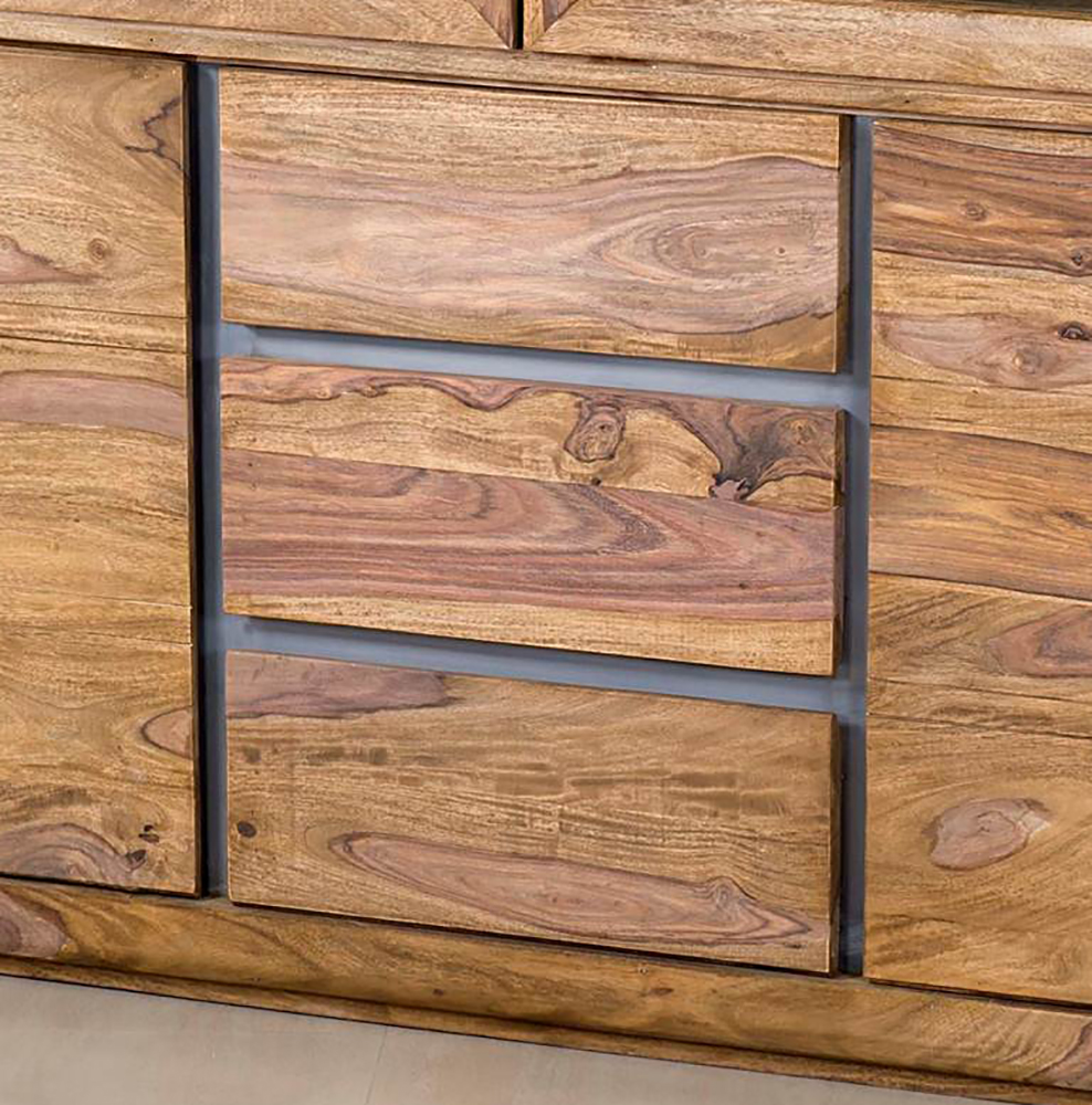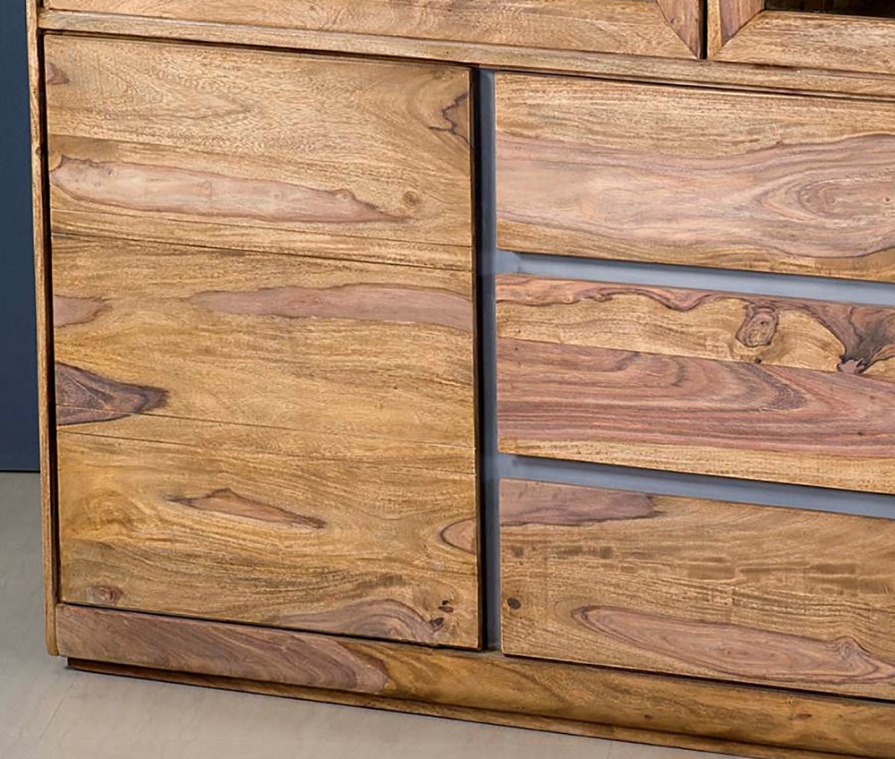 Highboard WZ-0316 Sheeshamholz massiv Natur 4 Türen 3 Schubkästen Kommode