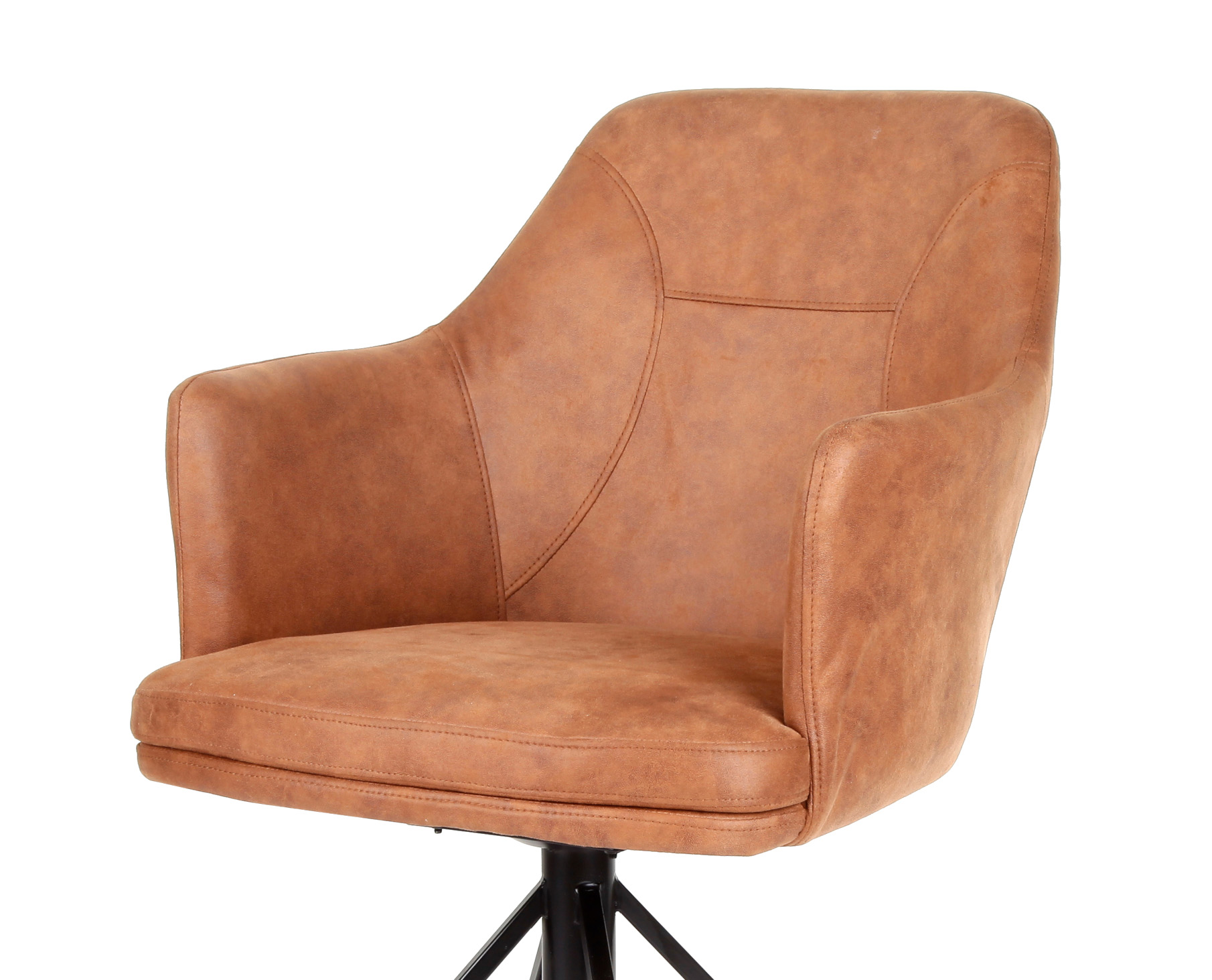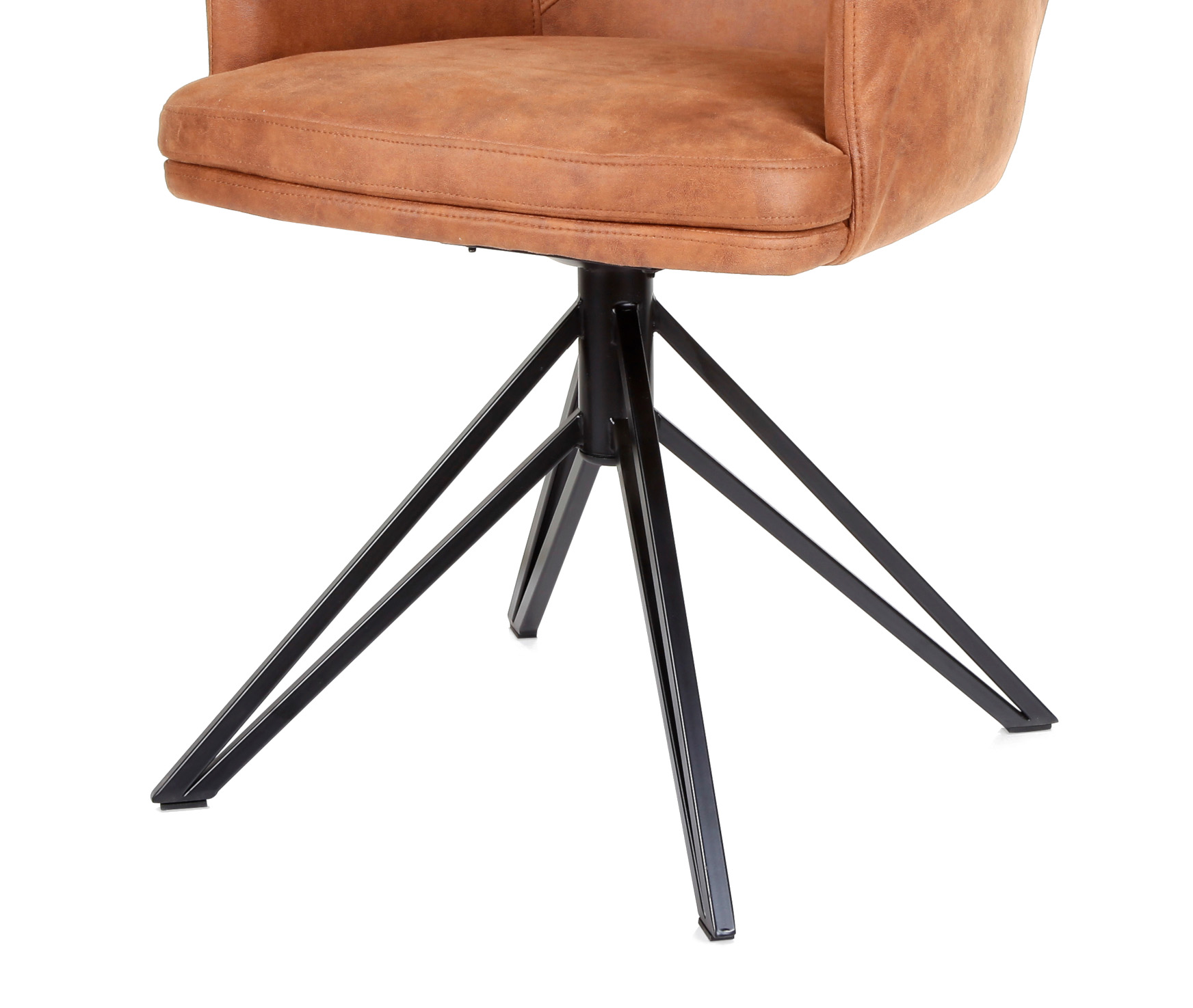 Der moderne Armlehnenstuhl Inca vereint modernes Wohnen und bequemes Sitzmöbel wie kaum ein anderes Möbelstück. Die komfortable Rückenlehne mit direktem ßbergang zu den Armlehnen sorgt für ein außerordentlich bequemes Sitzgefühl. Einen stabilen Stand erhält der Armlehnenstuhl Inca durch das modern gestaltete Metallgestell in einer Art "Speichen - Optik". Das 4-Stern-Gestell schafft in zeitlosem schwarz einen schicken Kontrast zu den vier verfügbaren Farbvarianten des Bezugstoffes. Der Armlehnenstuhl in der Farbe Cognac (Braun) ist passend für fast jeden Einrichtungsstil. Die praktische Drehfunktion (180° - 90° nach links und rechts) ermöglicht eine einfache Handhabung und erleichtert das Aufstehen und Hinsetzen. Ein entspanntes Abendessen an großer Tafel mit der Familie, oder ein langer Konferenztag bei der Arbeit, der Armlehnenstuhl Inca wird Sie begeistern!