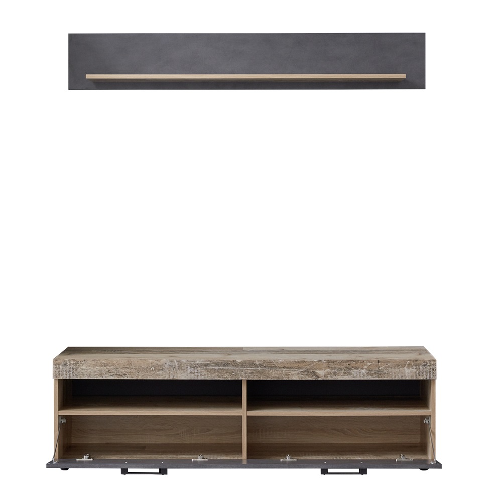 Lowboard m. Wandboard Tailor Indy 2 offene Fächer Klappe Tv-Board Matera Pale Wood NB