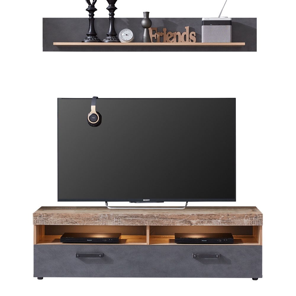 Produktinformationen "Lowboard m. Wandboard Tailor Indy 2 offene Fächer Klappe Tv-Board Matera Pale Wood NB"