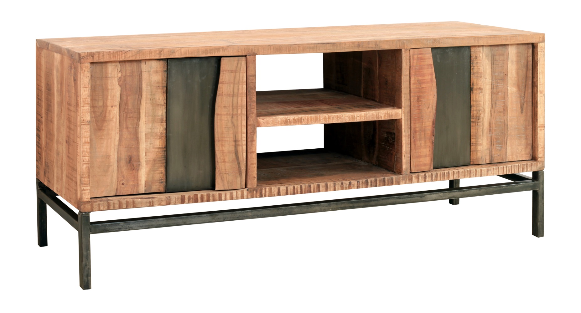 Lowboard Live 6252 Akazie Massivholz Eisen Hela Schwarz Grau 2 Türen 2 Ablagen