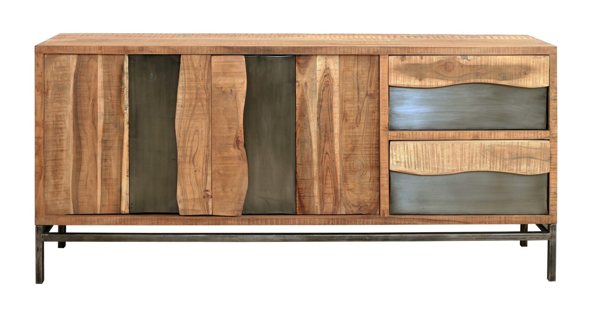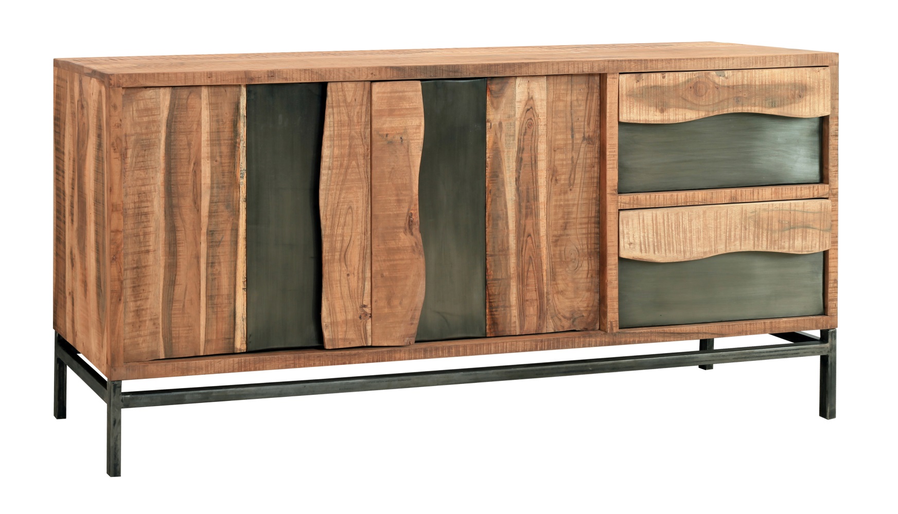 Kommode Live 6254 Hela Grau Schwarz 2 Türen 2 Schubladen Akazie-Massivholz Eisen
