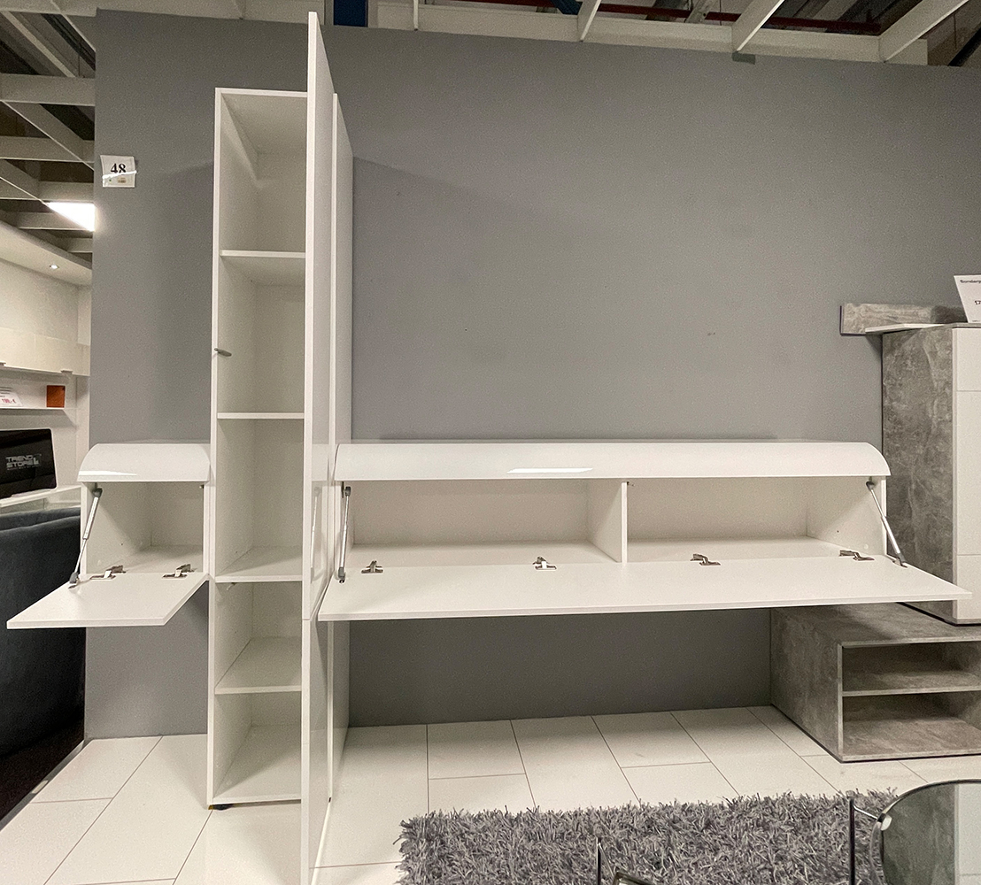 Anbauwand Bel Air Weiß Hochglanz 3-teilig Standschrank 2x Hängeelement Wohnwand Stube