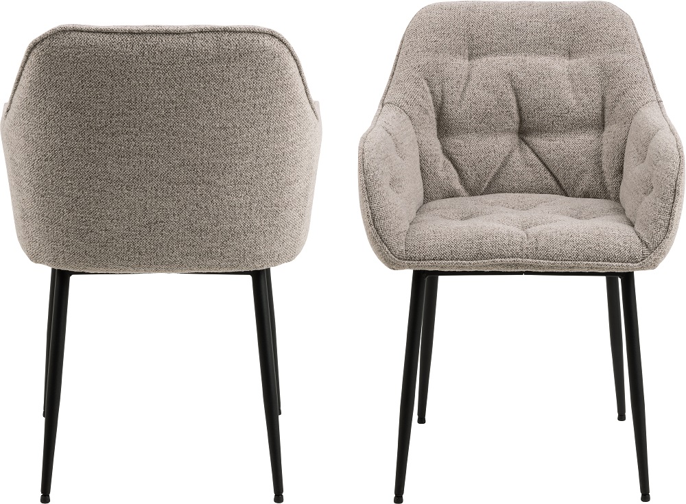 Der Armlehnenstuhl Brooke begeistert dank einer wundervollen Optik und hohem Sitzkomfort als ideales Sitzmöbel für Ihr Esszimmer. Gemeinsame Essen, längere Gesprächsrunden, der Armlehnenstuhl Brooke begleitet Sie komfortabel durch den Abend. Sein markantes Design erhält der Armlehnenstuhl Brooke durch die wundervolle Steppung auf der Innenseite. Der gemütliche Look lädt in Kombination mit dem hohen Sitzkomfort zum bequemen Sitzen und längerem verweilen. Das in schwarz pulverbeschichtete Metallgestell vollendet das tolle Design und sorgt für einen stabilen Stand. Bei dem VIC Bezugsstoff steht Ihnen vier Farben zur Auswahl, braun, duty rose, koralle und dunkelgrau. Bequemes Sitzgefühl, edles und luxuriöses Design, der Armlehnenstuhl Brooke ist eine großartige Lösung für das Esszimmer, die Lounge oder Ihre Küche.