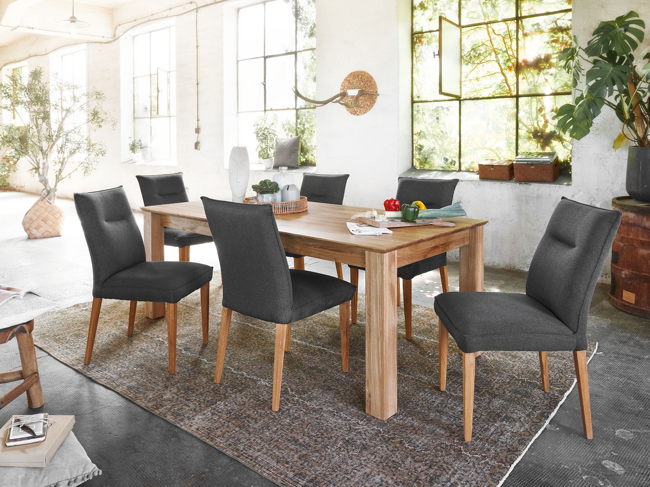 Tisch TI-0524 Wildeiche massiv 180-230-280 cm Esstisch Esszimmertisch Küche