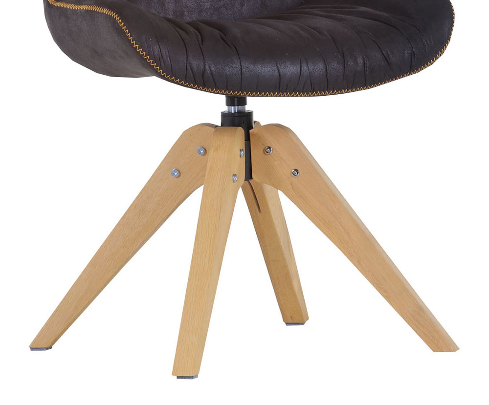 Produktinformationen "Stuhl Iggy Vintage Lederlook schwarz Gestell Eiche natur 360° drehbar mit gelber Zick-Zack Naht"