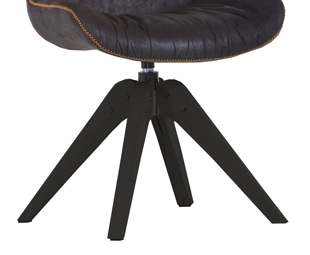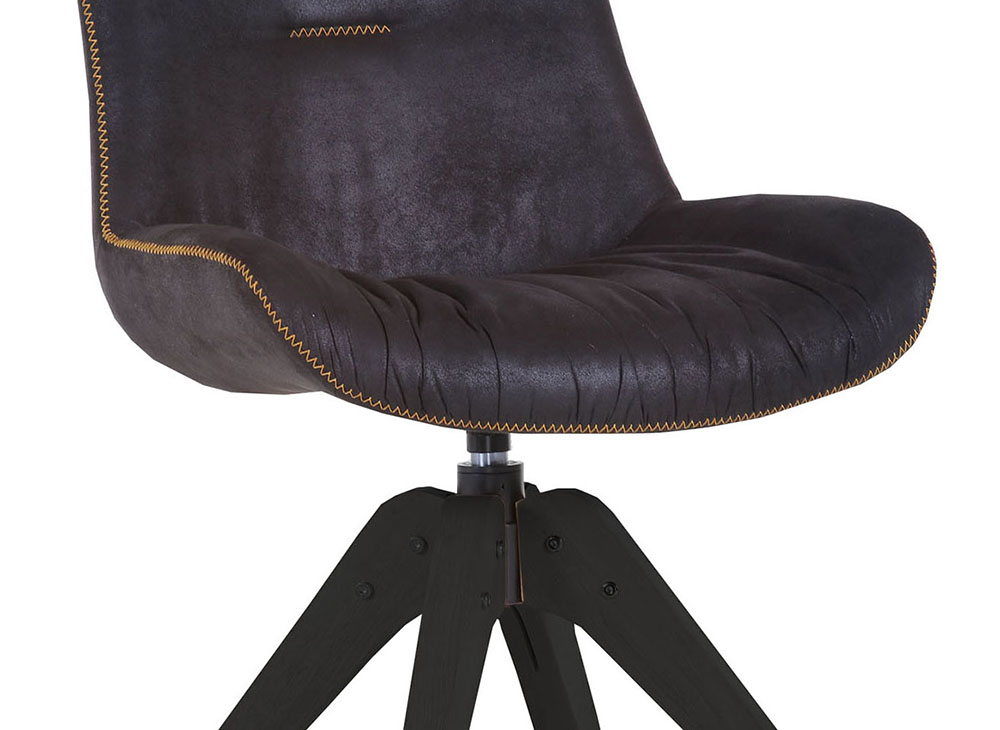 Produktinformationen "Stuhl Iggy Vintage Lederlook schwarz Gestell Eiche schwarz lackiert 360° drehbar mit gelber Zick-Zack Naht"