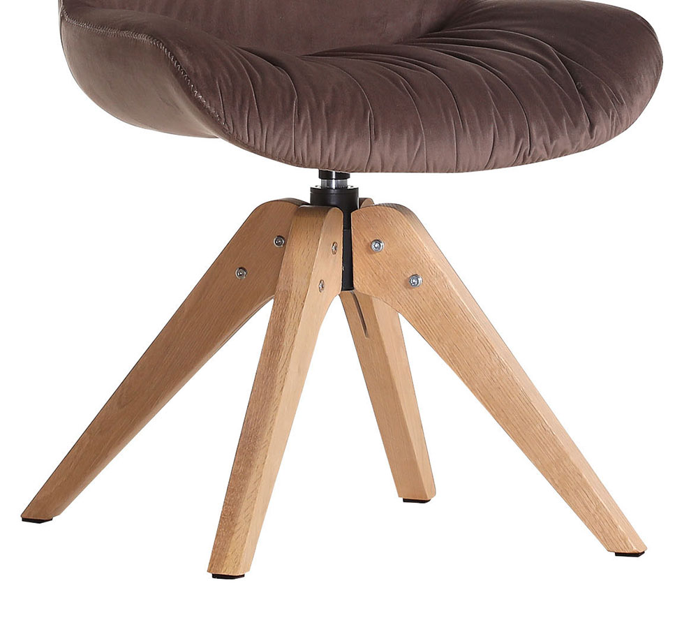 Stuhl Iggy Samtstoff braun Gestell Eiche natur lackiert 360° drehbar mit brauner Zick-Zack-Naht