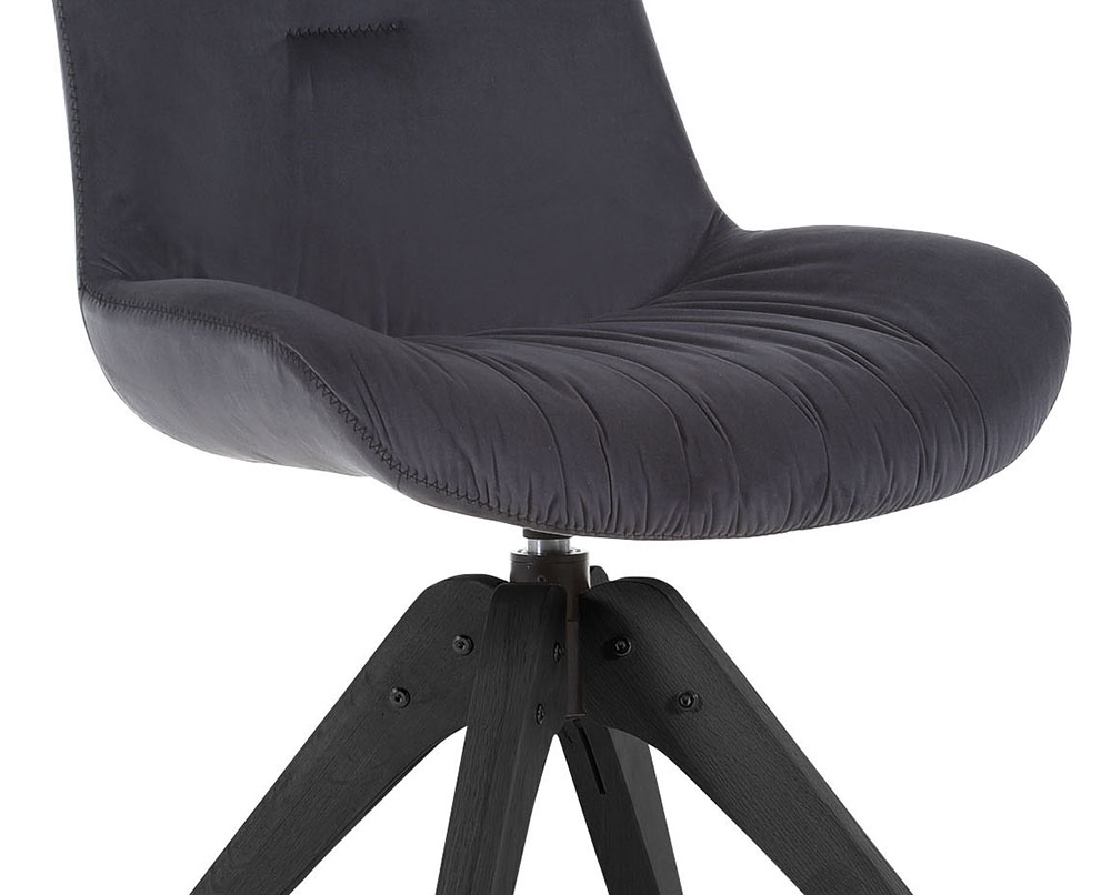 Produktinformationen "Stuhl Iggy Samtstoff schwarz Gestell Eiche schwarz lackiert 360° drehbar mit schwarzer Zick-Zack-Naht"