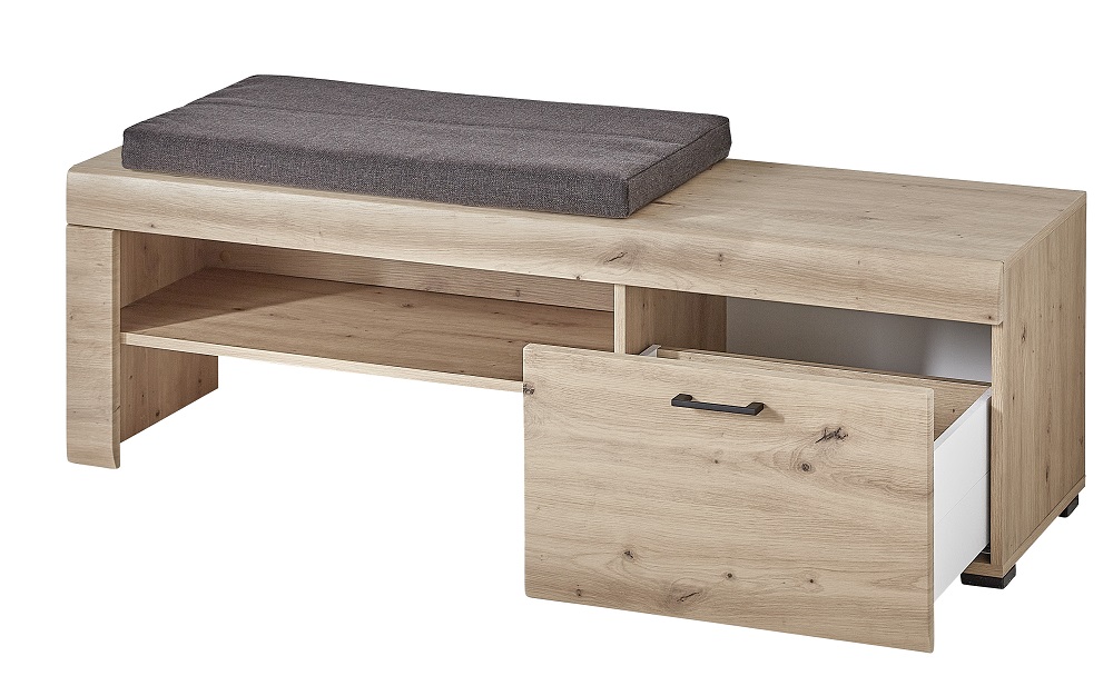 Produktinformationen "Garderobenbank Wien Artisan Eiche Steinoptik mit Sitzkissen Maße BxHxT ca.: 140x48x38 cm"