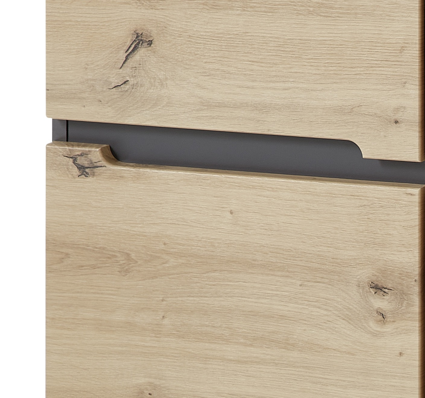 Der Garderobenschrank Memphis ist mit seiner tollen Bauweise ein echtes Platzwunder. Mit dem an der Front angebrachten Spiegel und der tollen Farbkombination Artisan Eiche und Grafit, wirkt der Garderobenschrank Memphis modern. Der Garderobenschrank bietet Ihnen viel Stauraum um Ihre Accessoires oder ihre Schuhe perfekt unterzubringen. Dafür hat der Garderobenschrank Memphis auch vier Einlegeböden. Holen Sie sich jetzt Ihren neuen Garderobenschrank, und bereichern Sie Ihren Eingangsbereich.