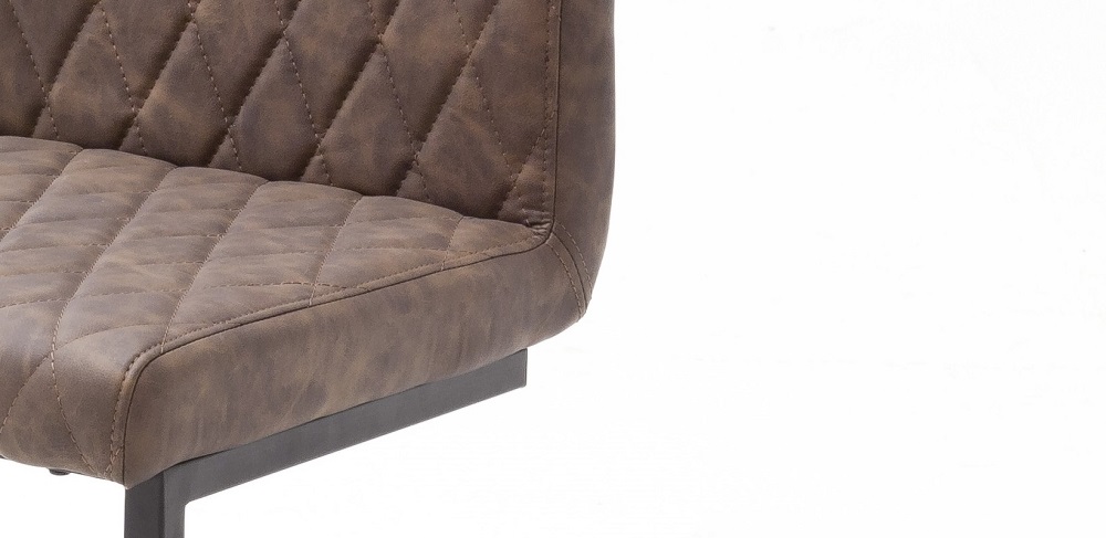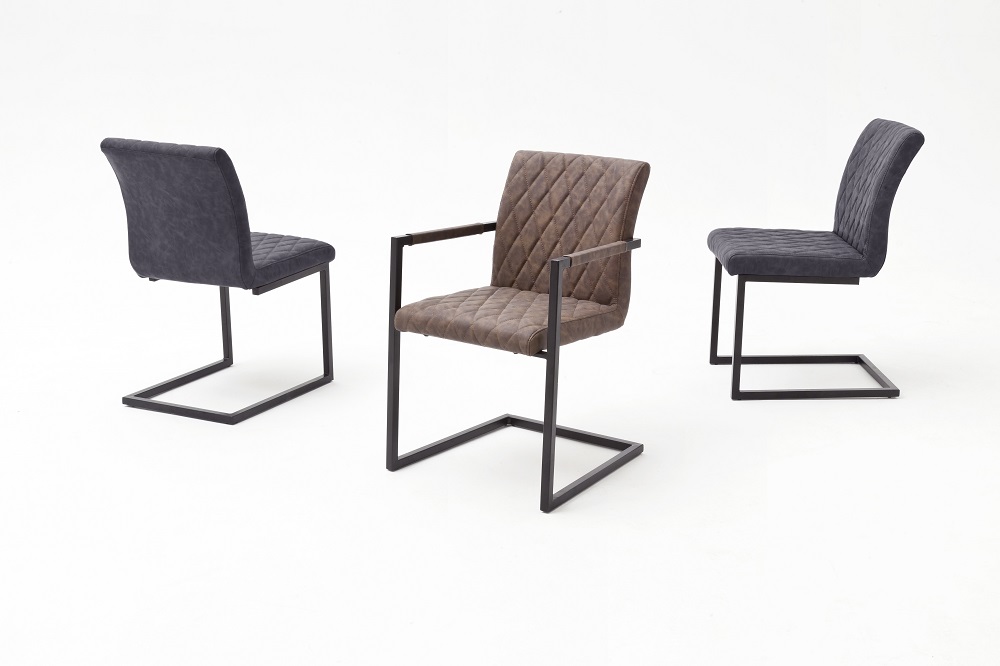 Der Armlehnstuhl Kian in Braun aus Metall bringt ein modernes Fabrikambiente in Ihren Wohnbereich. Das eckige Quadratrohrgestell aus schwarz lackiertem Metall passt bestens zu dem braunen Bezug aus Polyurethan. Die Rautensteppung rundet das Gesamtbild des Armlehnstuhl Kian charmant ab, sodass sich der Stuhl wunderbar in individuelle Einrichtungsstile anpasst. Der Freischwinger Kian mit einem Polyurethanschaumkern ist gemütlich und mit bequemen Armlehnen ausgestattet. So sind auch mehrgängige Festtagsmenüs und ausgedehnte Spieleabende entspannt möglich. Holen Sie sich jetzt Ihren passenden Begleiter für Ihren Essbereich. Auch für moderne Büroräume passt der Stuhl wunderbar als Besucherstuhl in Ihre Einrichtung. Alles in allem ist der Stuhl der perfekte Allrounder!