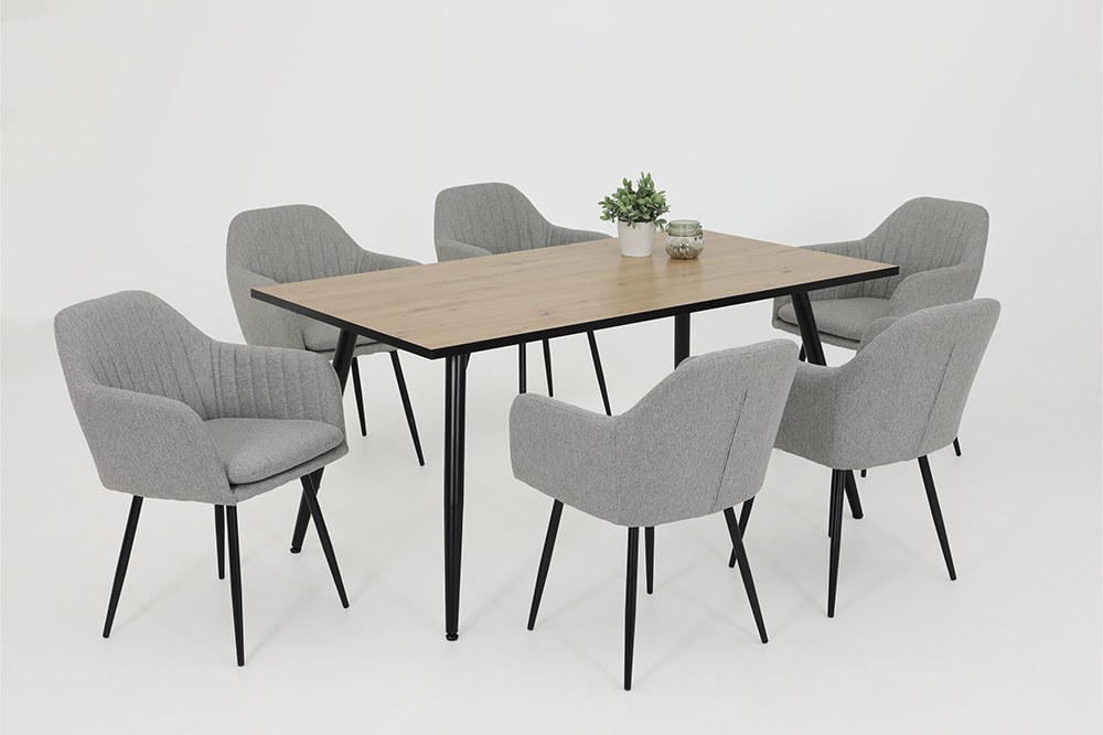 Sessel Mila II Grau Webstoff Armlehnenstuhl Polsterstuhl Esszimmerstuhl Küchenstuhl