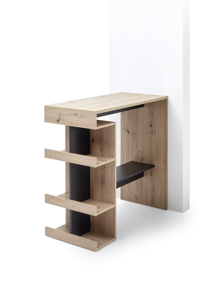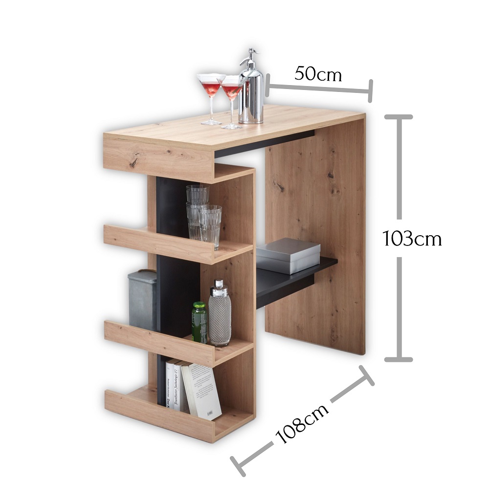 Bartisch, Esstisch, Tisch mit Ablage, Barmöbel, Tresentisch Smash Artisan Eiche und Schwarz Regalfächer