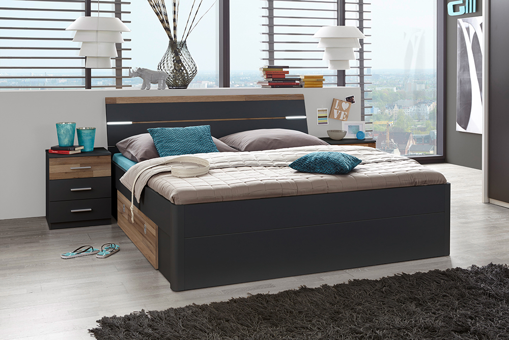 Bett Mars 140x200 Graphit Montana Oak Holzbett Bettgestell Bettset Jugendbett Bettkasten