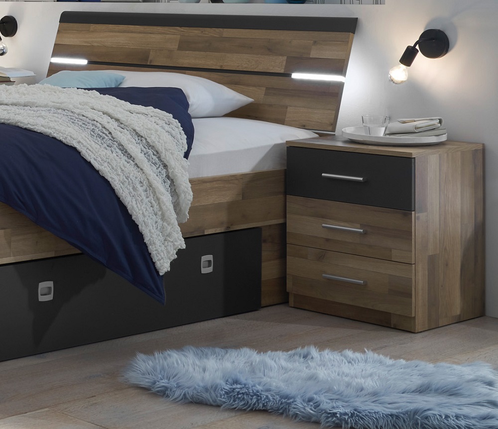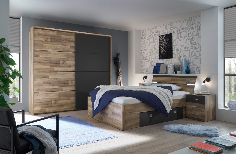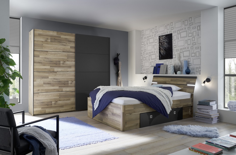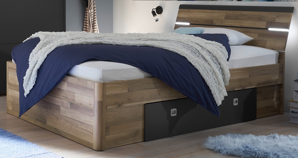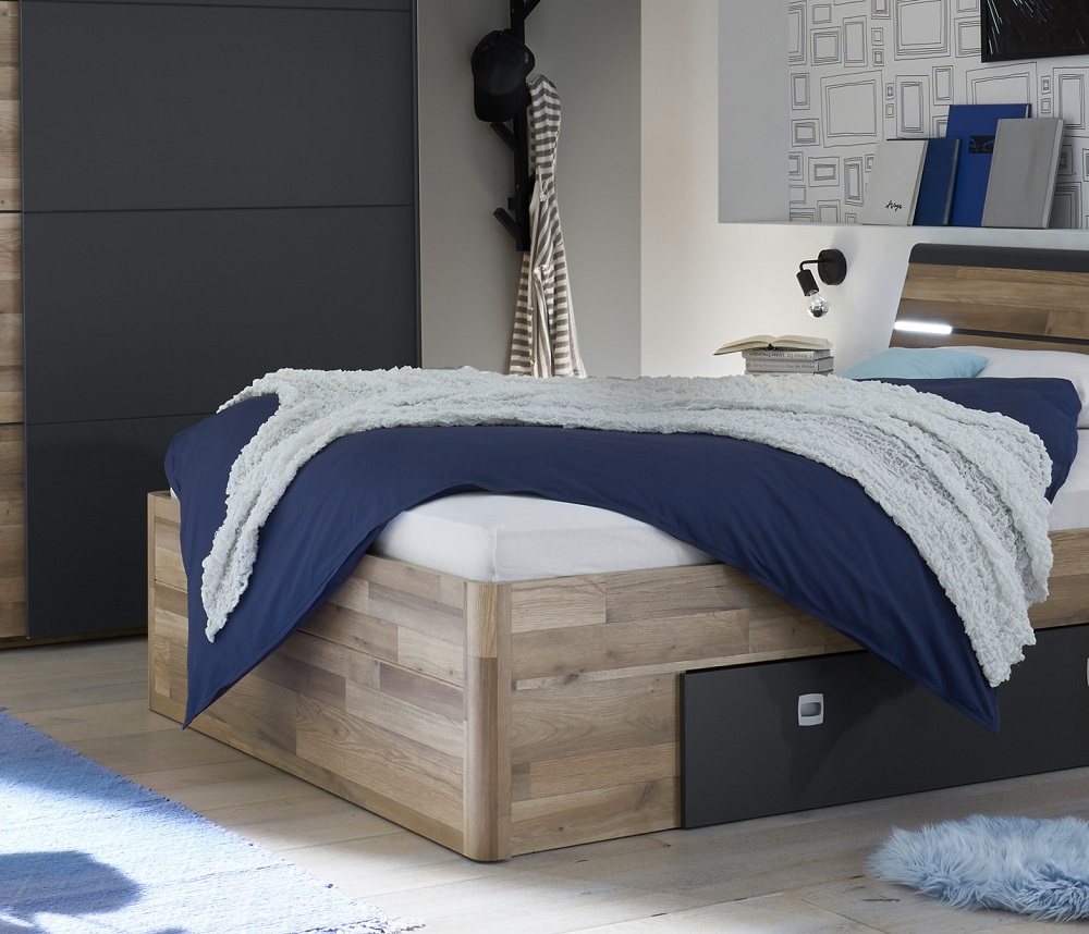 Bett Mars 140x200 Montana Oak Abs. Graphit Holzbett Bettgestell Bettset Jugendbett Bettkasten