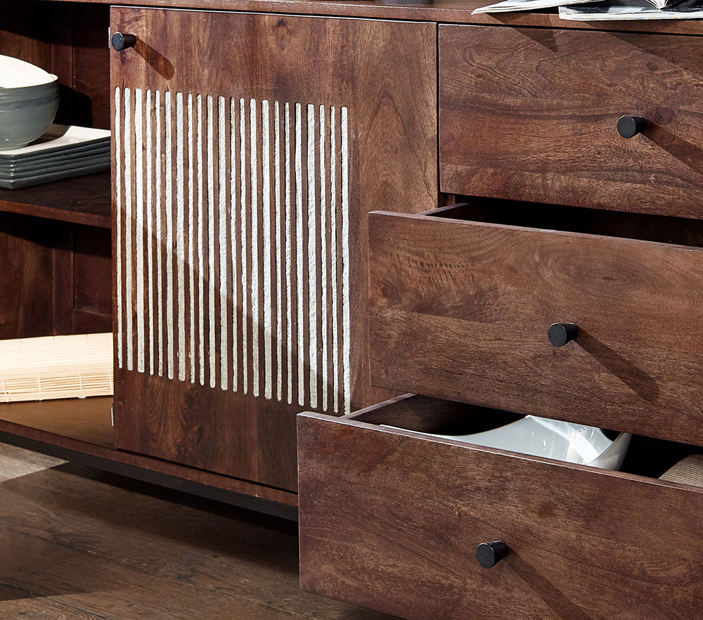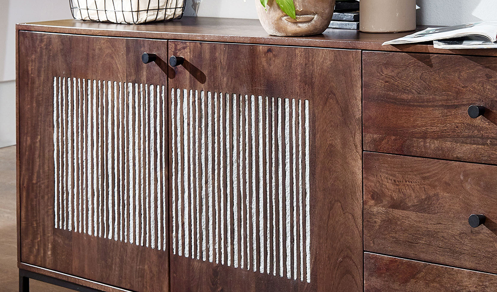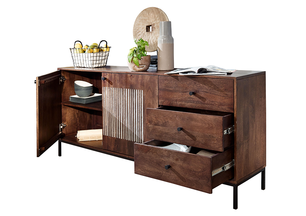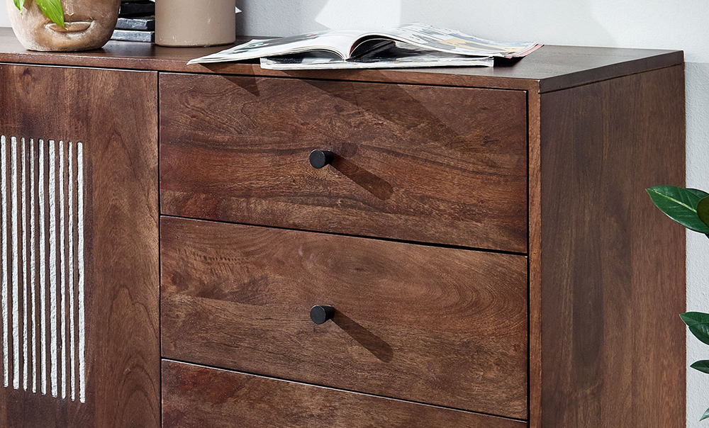 Sideboard III WZ-0564 Mangoholz massiv Steinfurnier Kommode Anrichte Schrank Wohnen