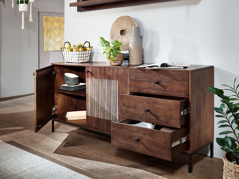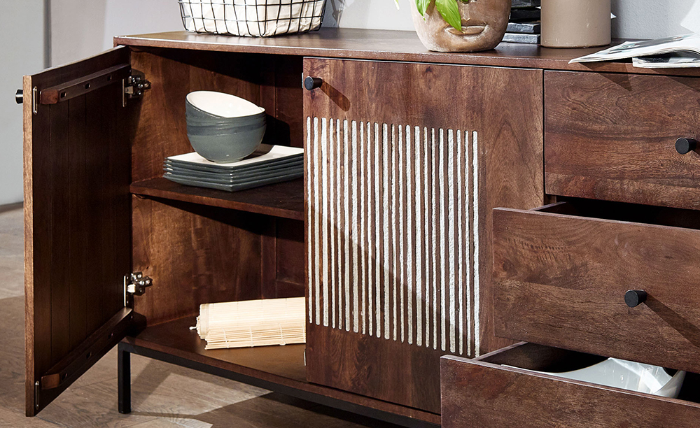 Produktinformationen "Sideboard III WZ-0564 Mangoholz massiv Steinfurnier Kommode Anrichte Schrank Wohnen"