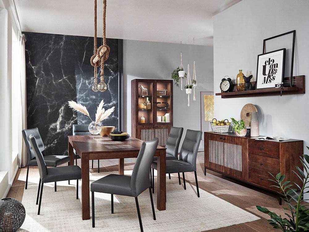 Der Esstisch der neuen Serie WZ-0564 mit seiner unkonventionellen lamellenartigen Optik auf der Tischplatte und der wundervollen Farbe des Mangoholzes ist ein echter Blickfang für Ihr Esszimmer und passt perfekt dort hinein. Der große Esstisch eignet sich wunderbar für große Familienessen oder für gemütliche Spieleabende. Auch für Ihre Blumen oder Ihren Dekorationsmaterialien passen wunderbar auf den Tisch.Hinweis für Massivholzmöbel:Bitte beachten Sie, dass Massivholz ein natürliches Material ist und daher einige Merkmale aufweisen kann, die seinen einzigartigen Charakter ausmachen. Massivholz kann Astlöcher, Wuchsrisse, Farbunterschiede und andere natürliche Merkmale aufweisen. Diese Unterschiede sind kein Grund zur Beanstandung, sondern zeugen von der Authentizität des Materials und verleihen jedem Möbelstück seinen individuellen Charme. Holz kann im Laufe der Zeit nachdunkeln oder aufgrund von Lichteinwirkung seine Farbe verändern. Diese Veränderungen sind normal und unterstreichen die natürliche Schönheit des Materials. Bitte zögern Sie nicht, wenden Sie sich bei Rückfragen gern an unseren Kundendienst.