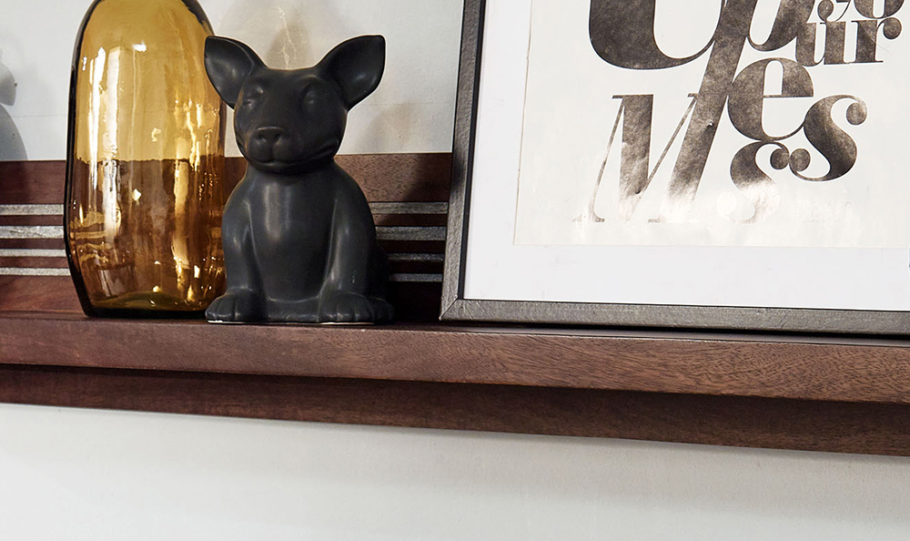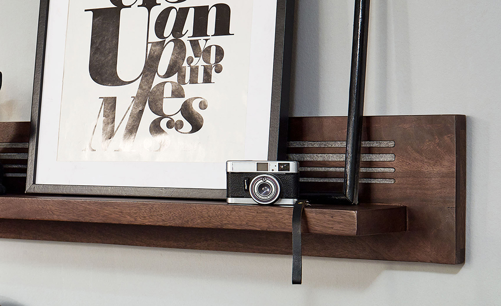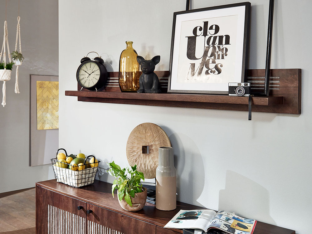 Wandregal II WZ-0564 Mangoholz massiv Steinfurnier Regal Wandregal Hängeregal