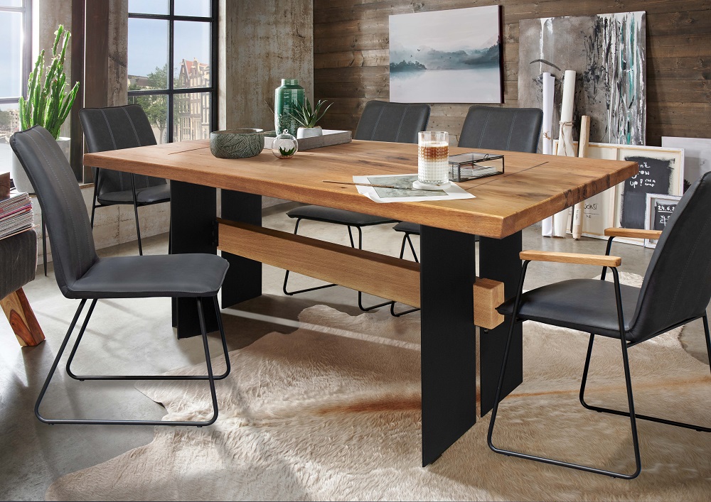 Vollholztisch TI-0532 Esstisch Wildeiche Balkeneiche massiv BxHxT ca.: 240x75x100 cm Metallgestell