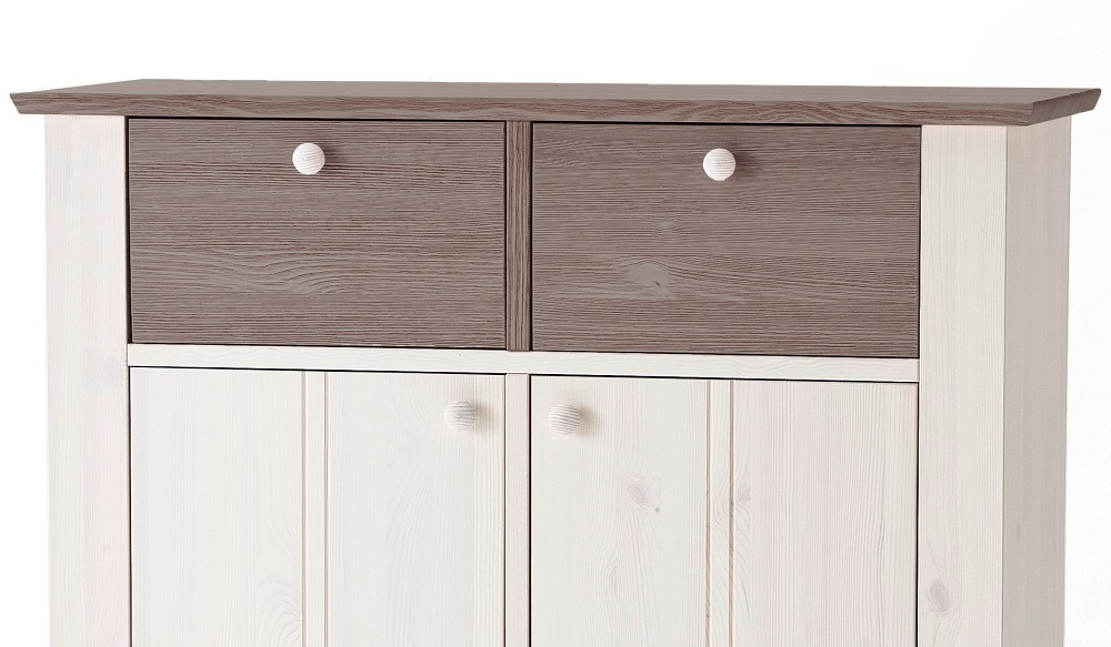 Wäscheschrank Göteborg Weiß Lava Kiefer Massivholz 2-trg. Schrank Anrichte Kommode