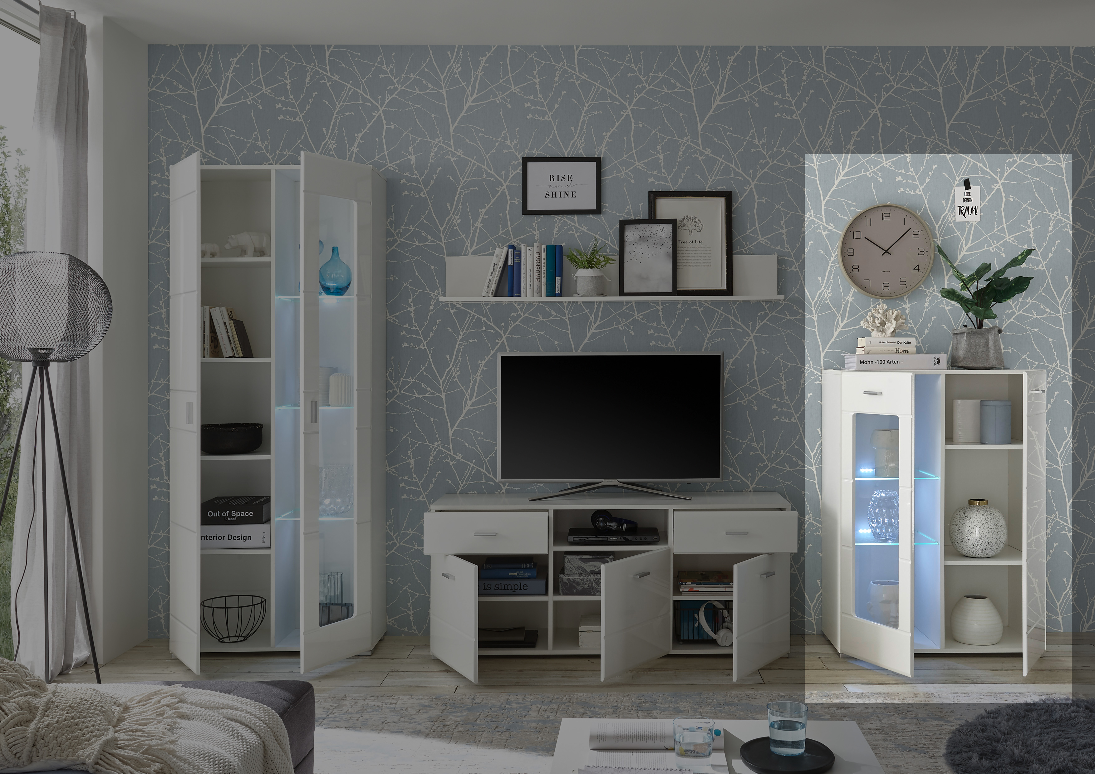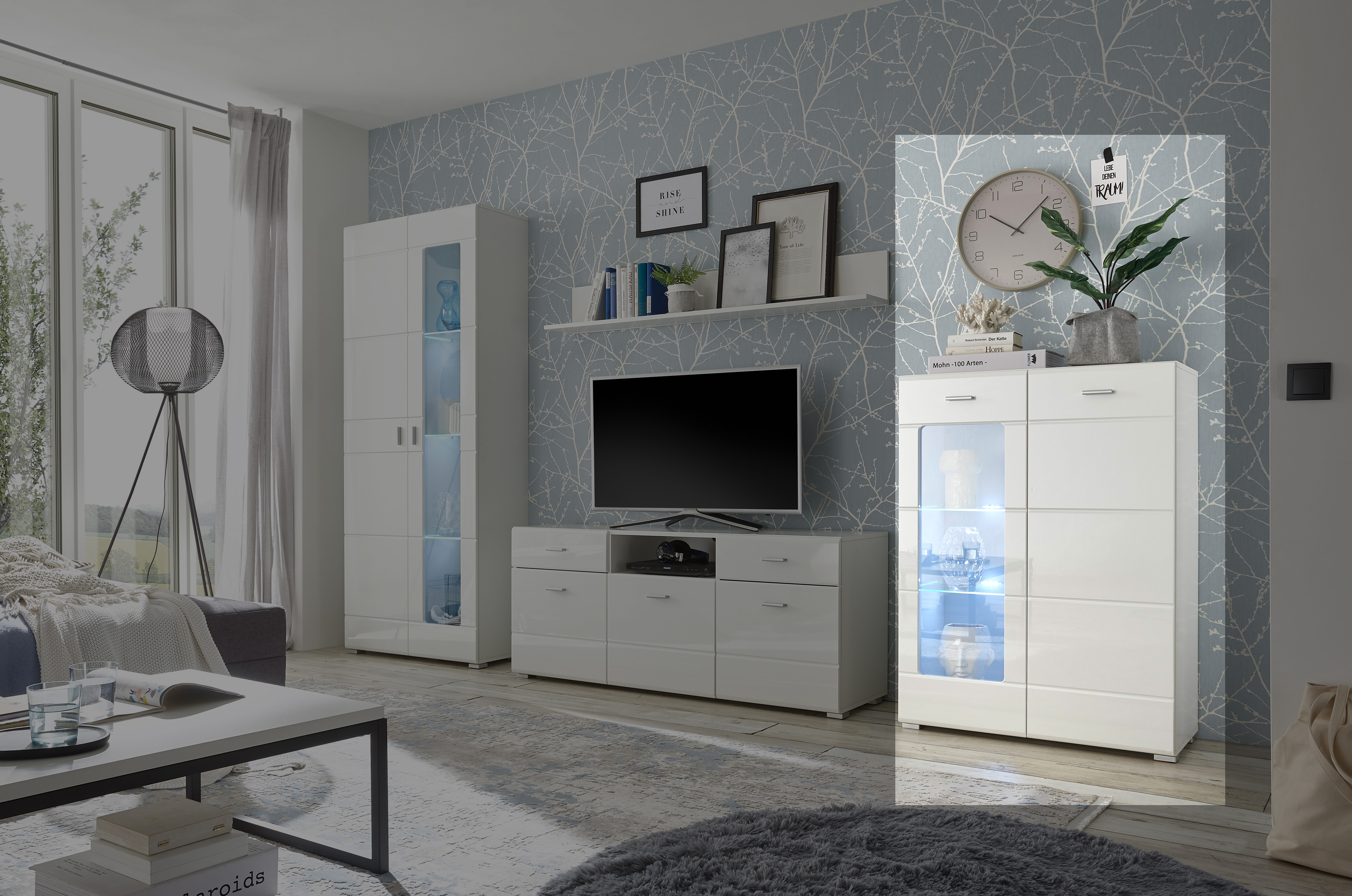 Stauraumelement Enrique Schrank Wandschrank Sideboard Regal Kommode mit Beleuchtung