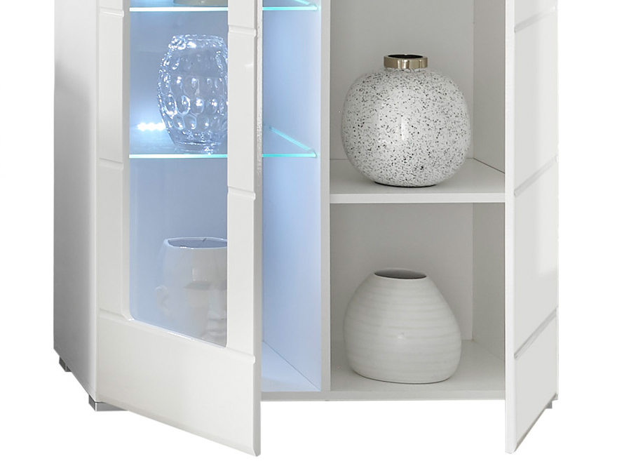 Entdecken Sie die tolle Vitrine Enrique. Die elegante Vitrine Enrique, die Ihre Sammlerstücke zum Strahlen bringt. Mit integrierter Beleuchtung und drei Glas- sowie vier MDF-Einlegeböden bietet sie reichlich Platz zur Präsentation Ihrer Dekorationen. Das weiße Design mit der stilvollen Glastür verleiht Ihrem Raum einen Hauch von Raffinesse. Gönnen Sie sich tolle Vitrine Enrique. Denn mit der Vitrine Enrique kommen Ihre Schätze im besten Licht und vor Staub geschützt wunderbar zur Geltung.