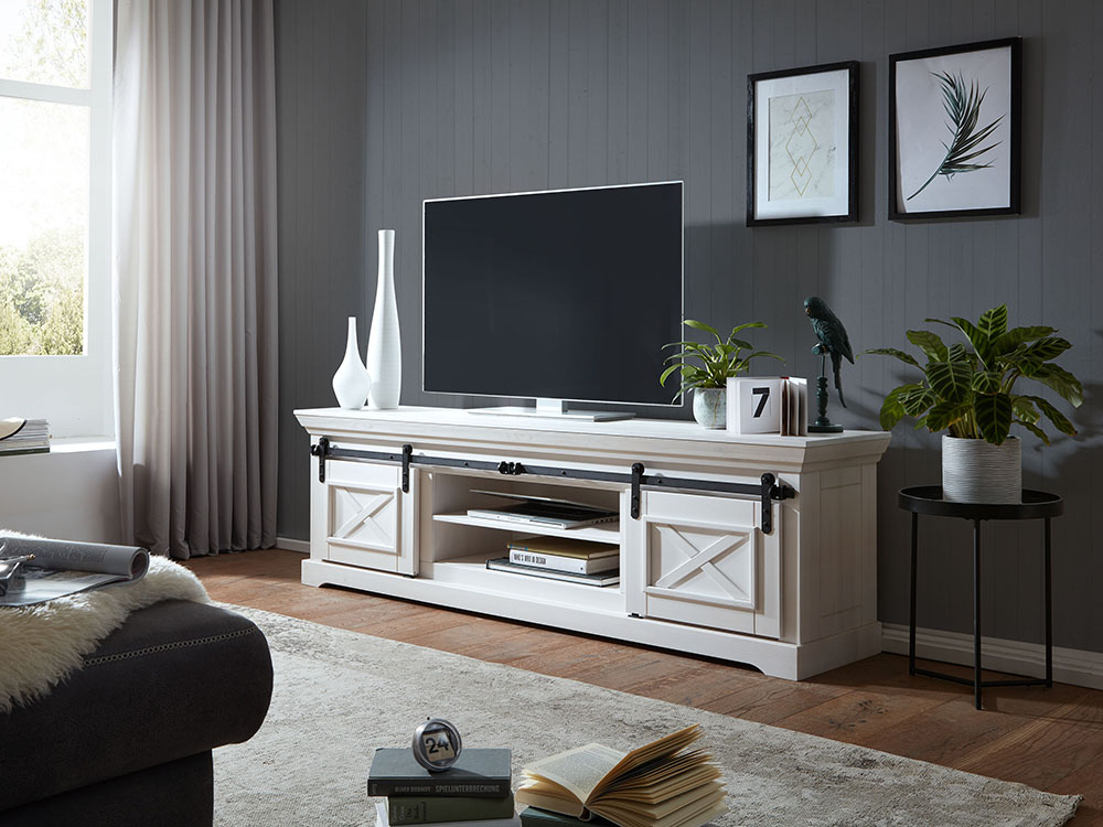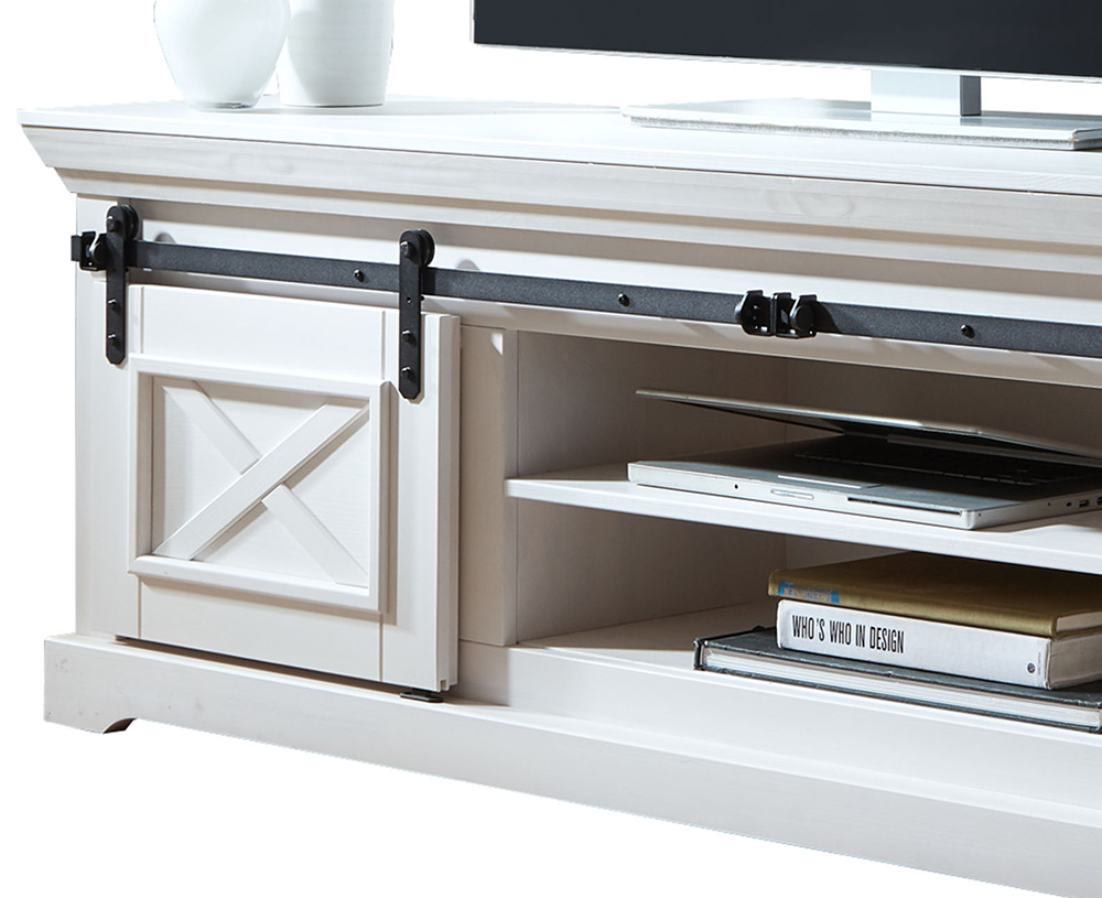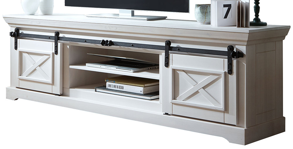 TV-Element 2 WZ-0548 Kiefer massiv gewachst Weiß Schwarze Metallelemente BxHxT ca.: 189x57x40 cm
