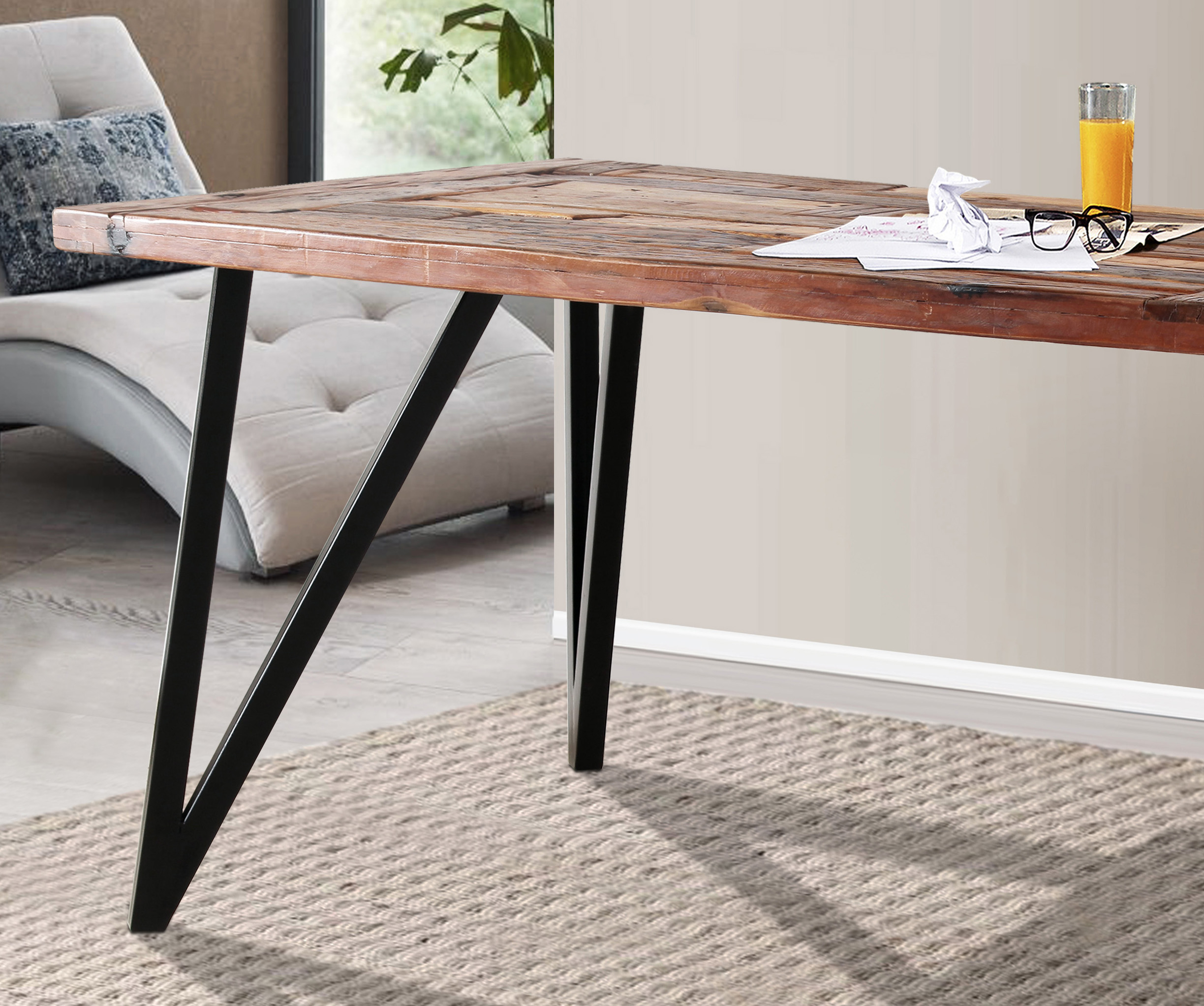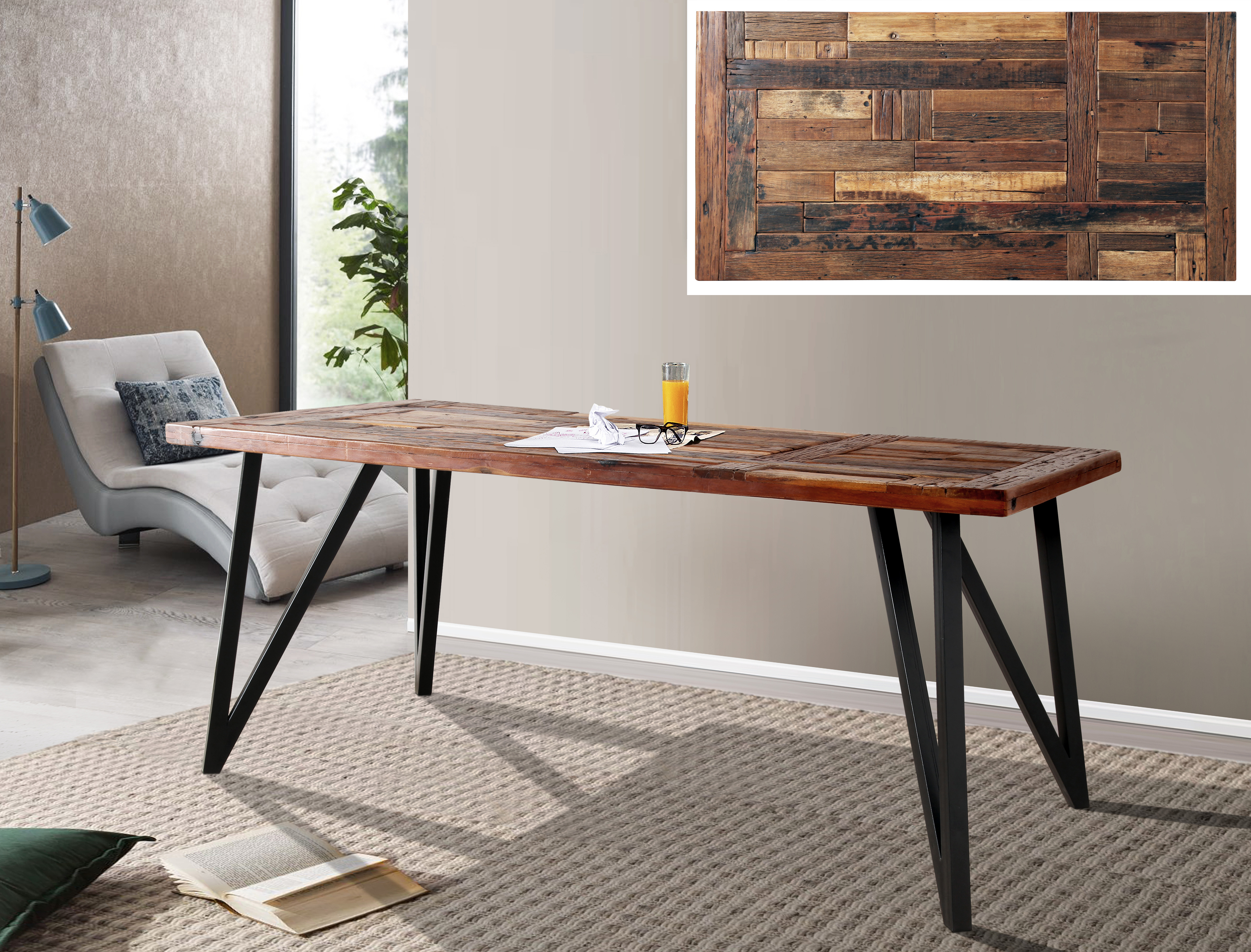 | Besonderheiten: | Tischplatte Handmade aus old Recycled Wood |