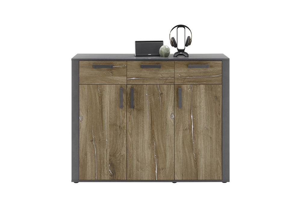 Produktinformationen "Kommode Athen III Matera Flagstaff dunkel 2 Einlegeböden 2 SK 3-trg mit Griffen"