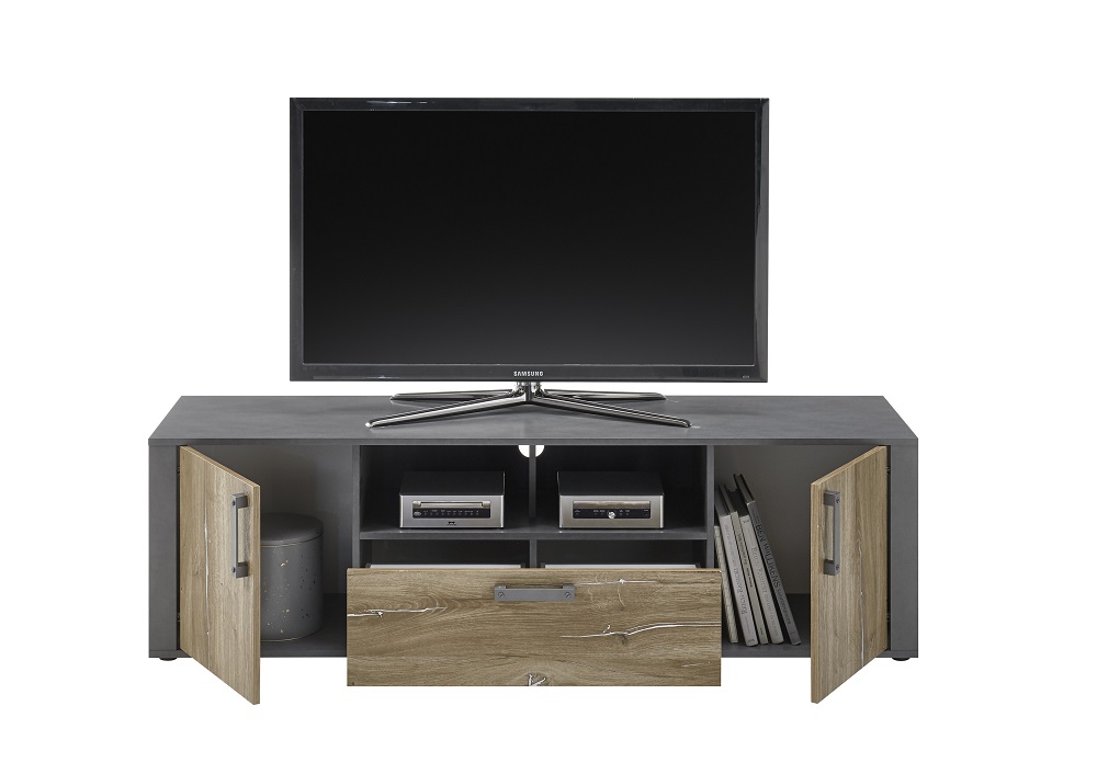 Lowboard Athen Matera Flagstaff dunkel 2-trg 1Sk 2 offene Fächer inkl. Griffen