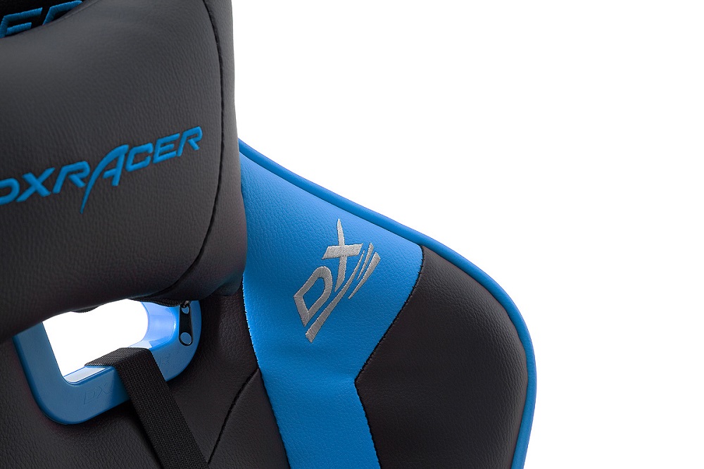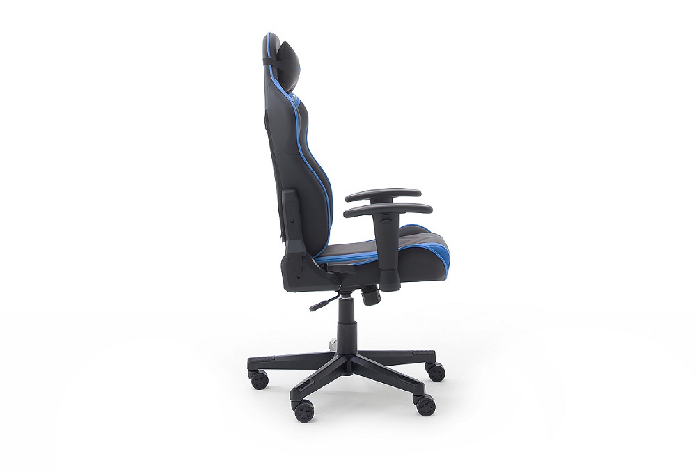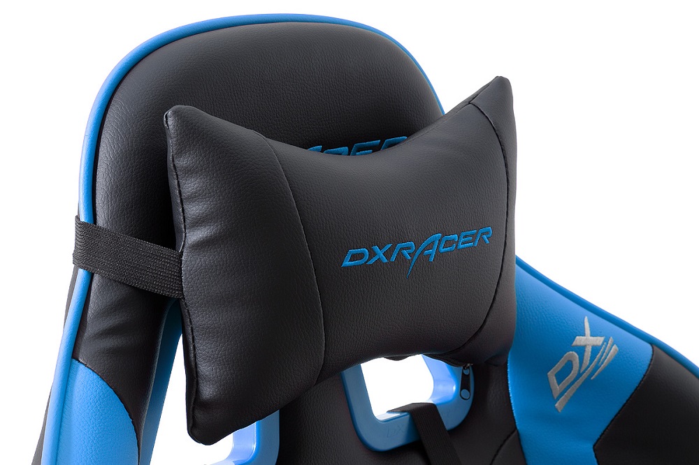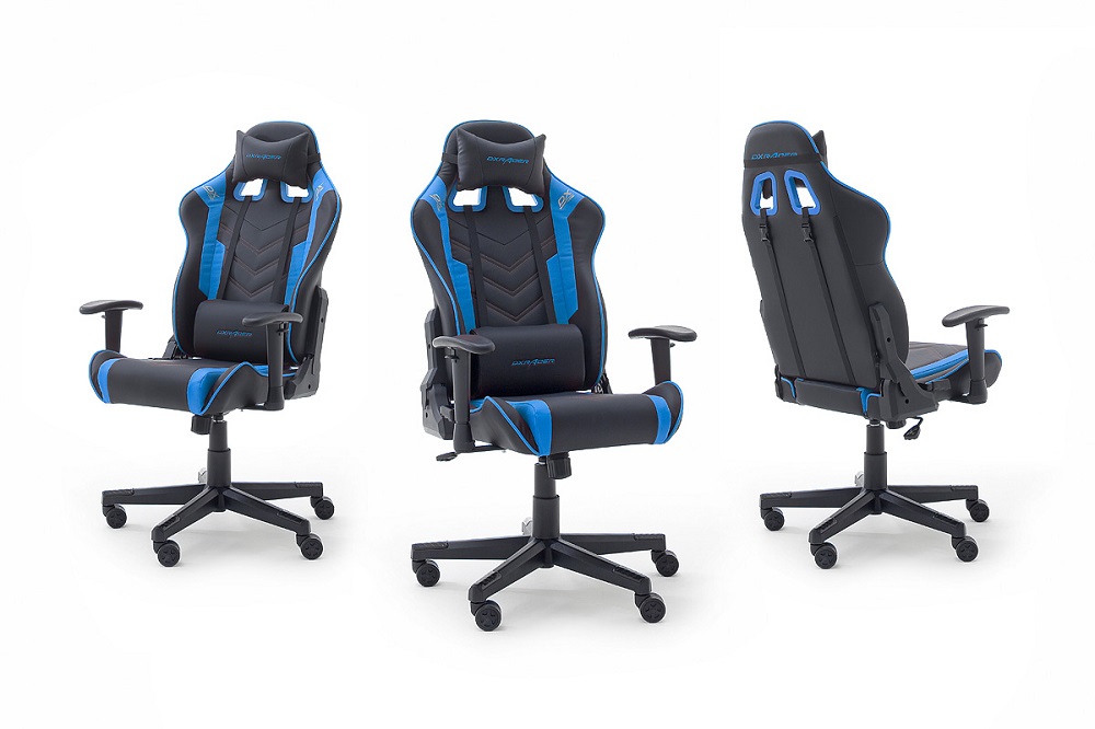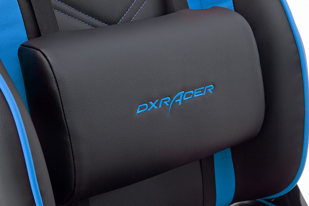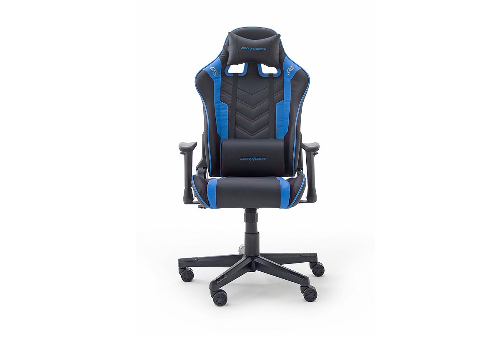 Gamingstuhl DX-Racer Schwarz-Blau mit Kissen höhenverstellbar Kunstleder Bürostuhl Gaslift