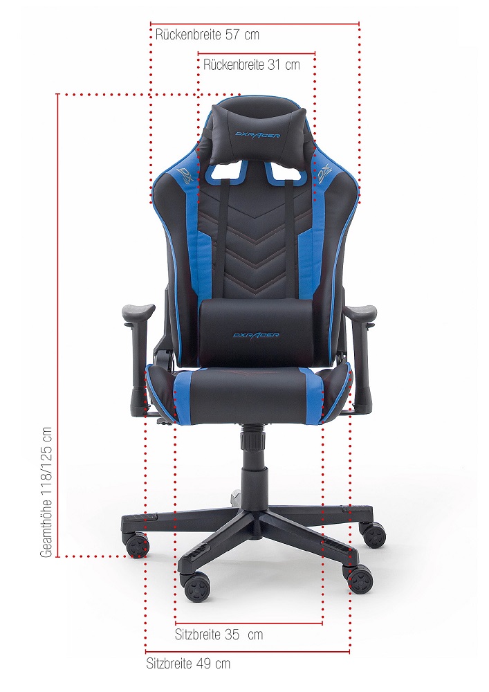 Produktinformationen "Gamingstuhl DX-Racer Schwarz-Blau mit Kissen höhenverstellbar Kunstleder Bürostuhl Gaslift"