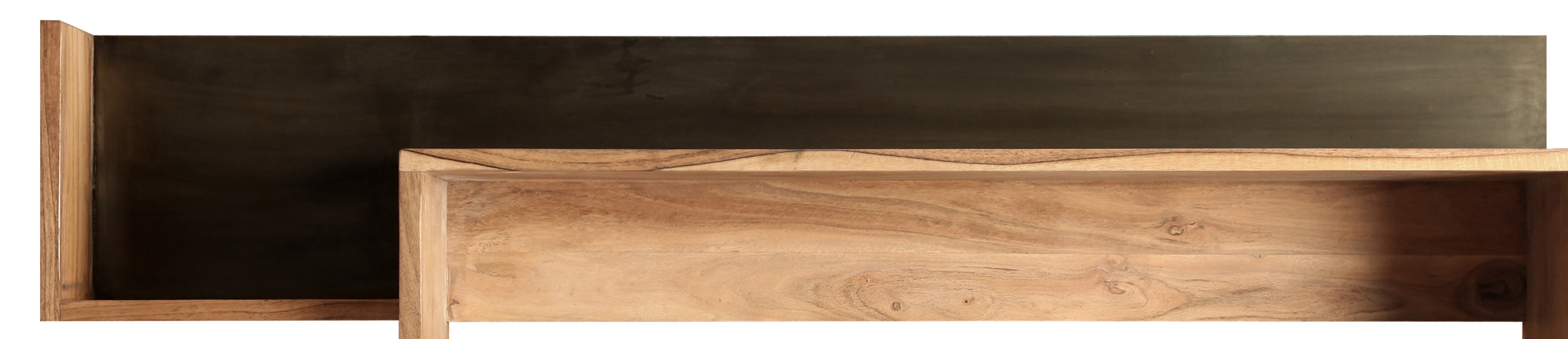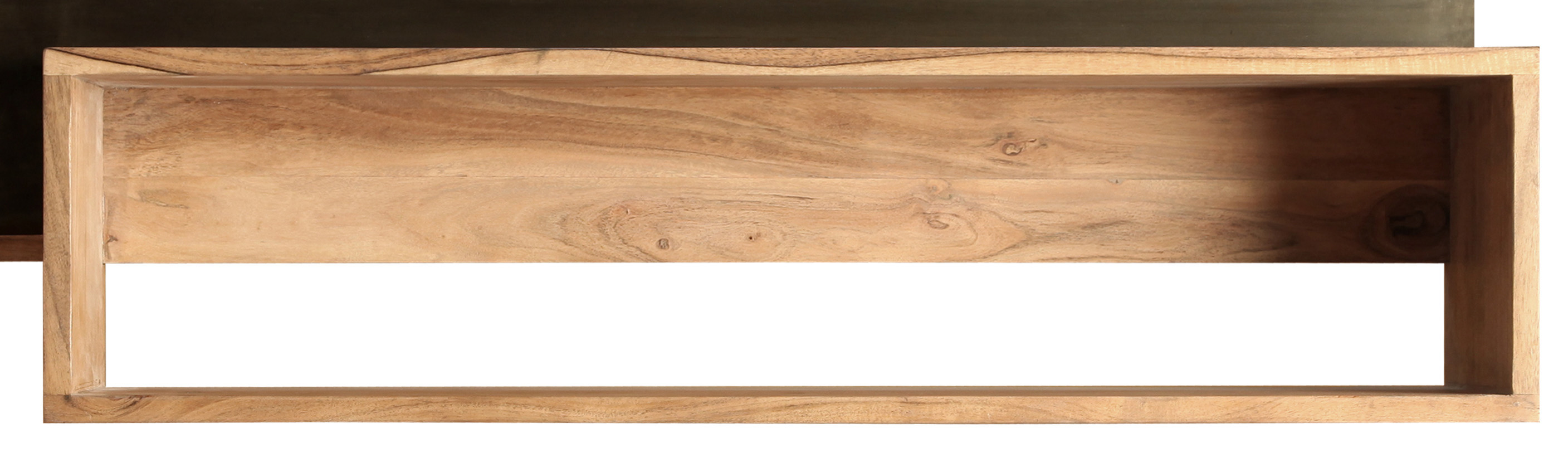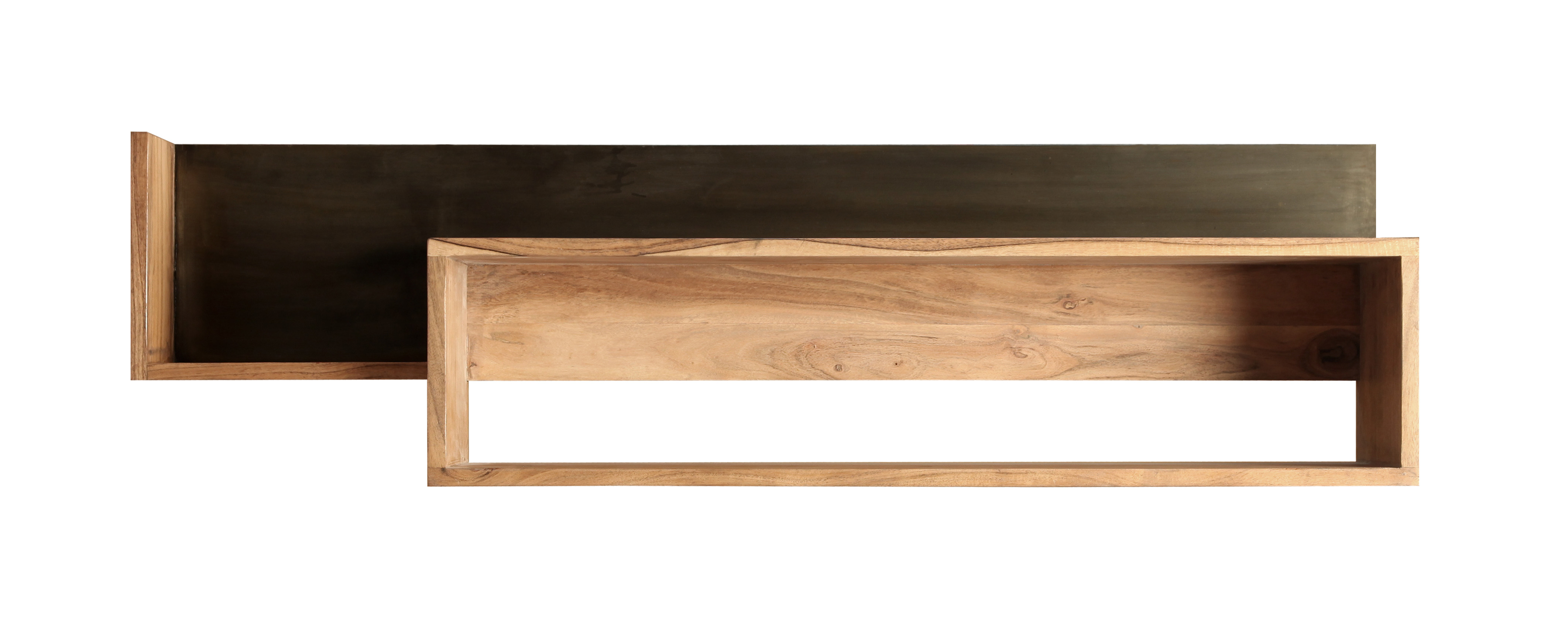 Holen Sie sich jetzt das neue Regal Tucson 2659 und bringen Sie ein stilvolles Regal in Ihre Inneneinrichtung. Dieses vielseitige Regal der Serie Tucson bietet Ihnen optisch einen echten Hingucker, und bereichert Ihre Inneneinrichtung. Dank dem Metallgestell können Sie auch ganz einfach etwas schwerere Dekorationen abstellen, und perfekt zur Schau stellen. Dank der beiden Schubladen können Sie auch ganz einfach Ihre kleinen Accessoires unterbringen, sodass Sie diese jederzeit wiederfinden. Holen Sie sich jetzt Ihr neues Regal Tucson 2659, und bereichern Sie Ihren Alltag!Hinweis für Massivholzmöbel:Bitte beachten Sie, dass Massivholz ein natürliches Material ist und daher einige Merkmale aufweisen kann, die seinen einzigartigen Charakter ausmachen. Massivholz kann Astlöcher, Wuchsrisse, Farbunterschiede und andere natürliche Merkmale aufweisen. Diese Unterschiede sind kein Grund zur Beanstandung, sondern zeugen von der Authentizität des Materials und verleihen jedem Möbelstück seinen individuellen Charme. Holz kann im Laufe der Zeit nachdunkeln oder aufgrund von Lichteinwirkung seine Farbe verändern. Diese Veränderungen sind normal und unterstreichen die natürliche Schönheit des Materials. Bitte zögern Sie nicht, wenden Sie sich bei Rückfragen gern an unseren Kundendienst.