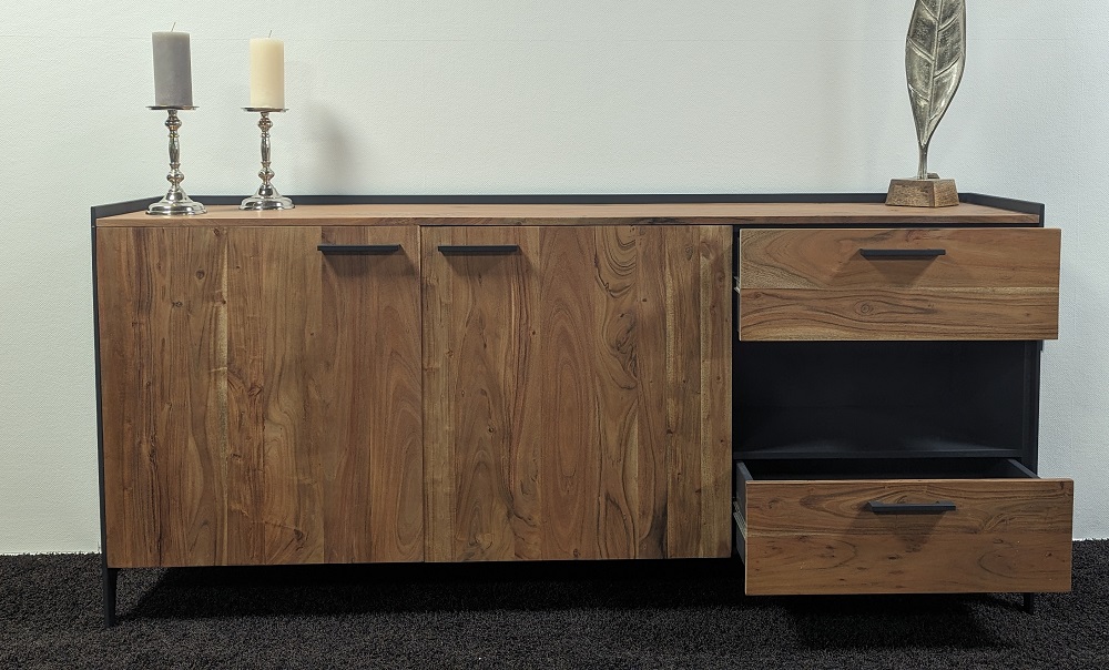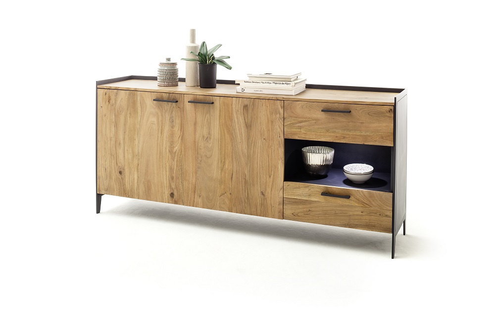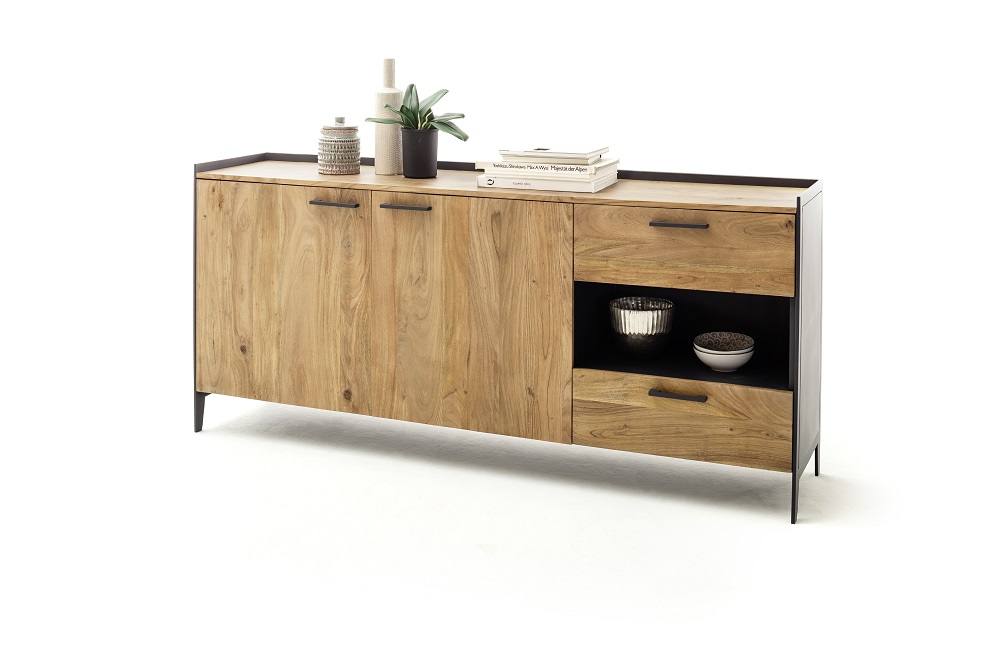 | Besonderheiten: | Deckplatte und Front: Akazie Massiv, Innen: Holzwerkstoff, Korpus außen: Metall |