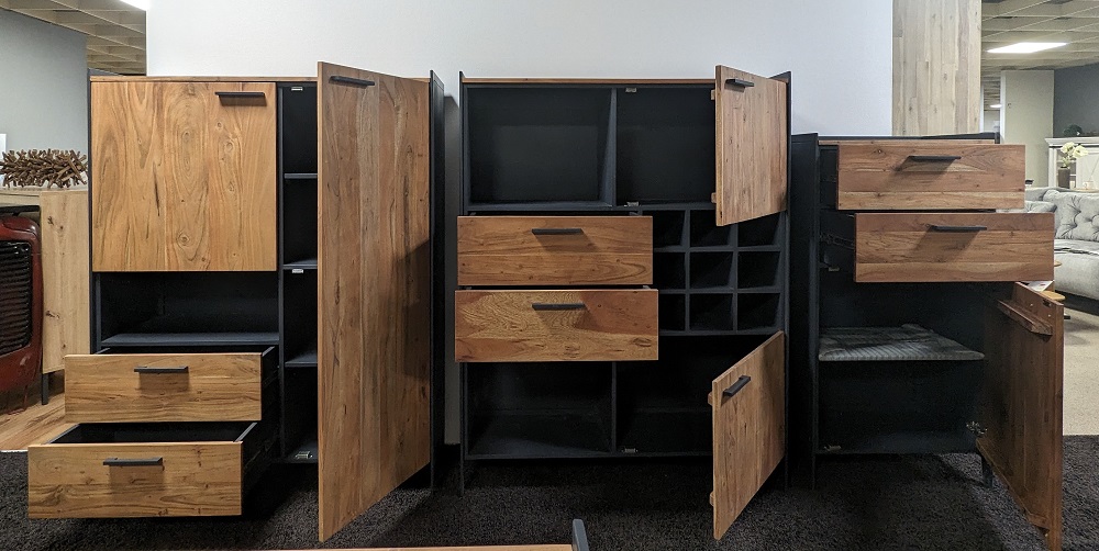 Das Lowboard der Möbelserie Kuba passt sich mit der industriell-modernen Bauart wunderbar Ihren Wohnbereich an. Mit dem zeitlosen Design und der modernen Farbkonstellation Anthrazit matt, Grau und Akazie Natur, ist das Lowboard die perfekte Bereicherung für Ihr Wohnzimmer. Ausreichend Platz bietet das Lowboard in Form von mehreren Schubladen sowie Ablagefächern und einem Regal hinter einer Tür. Dort können Sie wunderbar Ihre Dekorationen oder Ihre technischen Anlagen unterbringen. Mit dem Lowboard der Serie Kuba können Sie nichts falsch machen! Holen Sie sich jetzt Ihr neues Lowboard, und bereichern Sie Ihren Alltag!Hinweis für Massivholzmöbel:Bitte beachten Sie, dass Massivholz ein natürliches Material ist und daher einige Merkmale aufweisen kann, die seinen einzigartigen Charakter ausmachen. Massivholz kann Astlöcher, Wuchsrisse, Farbunterschiede und andere natürliche Merkmale aufweisen. Diese Unterschiede sind kein Grund zur Beanstandung, sondern zeugen von der Authentizität des Materials und verleihen jedem Möbelstück seinen individuellen Charme. Holz kann im Laufe der Zeit nachdunkeln oder aufgrund von Lichteinwirkung seine Farbe verändern. Diese Veränderungen sind normal und unterstreichen die natürliche Schönheit des Materials. Bitte zögern Sie nicht, wenden Sie sich bei Rückfragen gern an unseren Kundendienst.