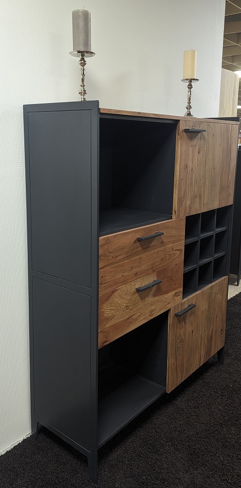 Das Highboard der tollen Möbelserie Kuba passt sich wunderbar mit dem schönen industriell-modernen Look Ihren Wohnbereich an. Mit der zeitlosen Bauart und der wundervollen farblichen Kombination Anthrazit matt, und Natur Akazie ist das Highboard Kuba die schöne perfekte Bereicherung für Ihren Wohnbereich. Das Highboard Kuba bietet Ihnen zudem eine Menge Stauraum, um Ihre Dekorationen oder Accessoires unterbringen zu können. In dem Ablagefach sowie auf dem Highboard können Sie Ihre Dekoration oder z.b. Bilder von Ihren Liebsten perfekt zur Schau stellen. Mit dem Highboard der Serie Kuba können Sie also nichts falsch machen. Holen Sie sich jetzt Ihr neues Highboard der Serie Kuba und bereichern Sie Ihren Wohnbereich!Hinweis für Massivholzmöbel:Bitte beachten Sie, dass Massivholz ein natürliches Material ist und daher einige Merkmale aufweisen kann, die seinen einzigartigen Charakter ausmachen. Massivholz kann Astlöcher, Wuchsrisse, Farbunterschiede und andere natürliche Merkmale aufweisen. Diese Unterschiede sind kein Grund zur Beanstandung, sondern zeugen von der Authentizität des Materials und verleihen jedem Möbelstück seinen individuellen Charme. Holz kann im Laufe der Zeit nachdunkeln oder aufgrund von Lichteinwirkung seine Farbe verändern. Diese Veränderungen sind normal und unterstreichen die natürliche Schönheit des Materials. Bitte zögern Sie nicht, wenden Sie sich bei Rückfragen gern an unseren Kundendienst.